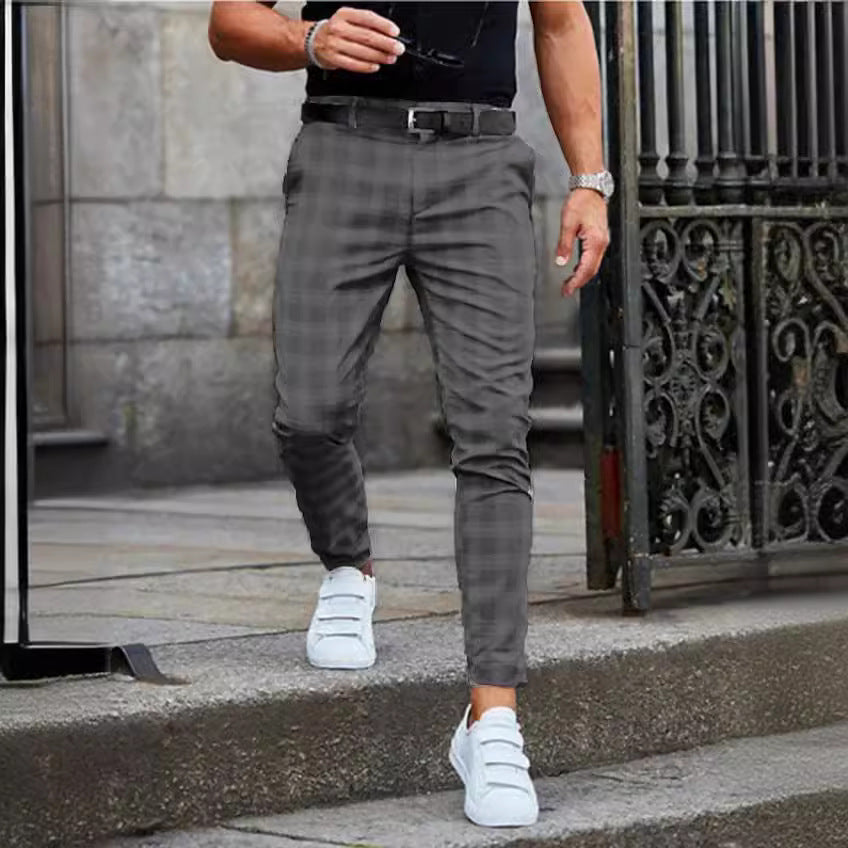 Men's Stylish Plaid Jogger Pants With Casual White Sneakers