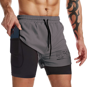USA FLAG QUICKDRY POCKET 2 IN 1 LAUFSHORTS 7'' INNENNAHT