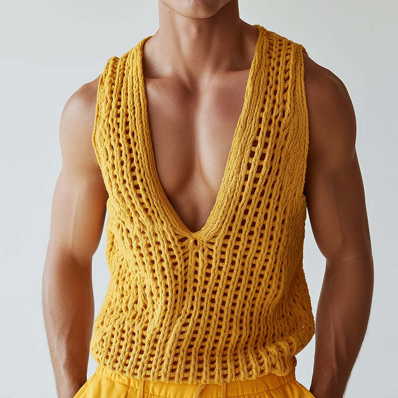 Produktname: Lässiges Vintage-Tanktop aus massivem Strick für Herren