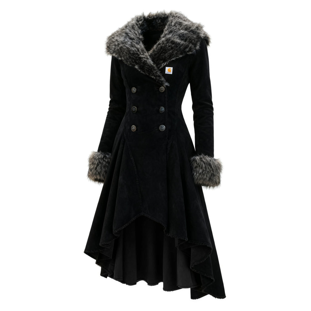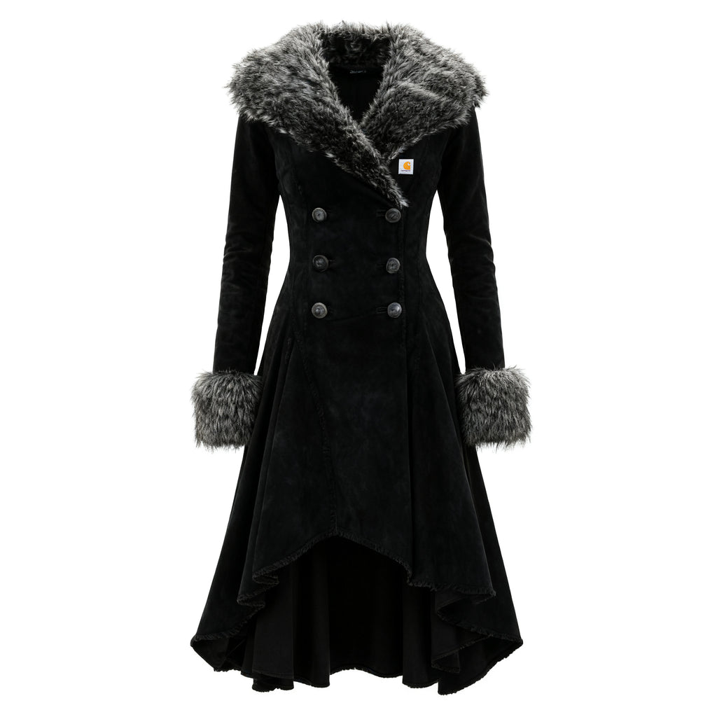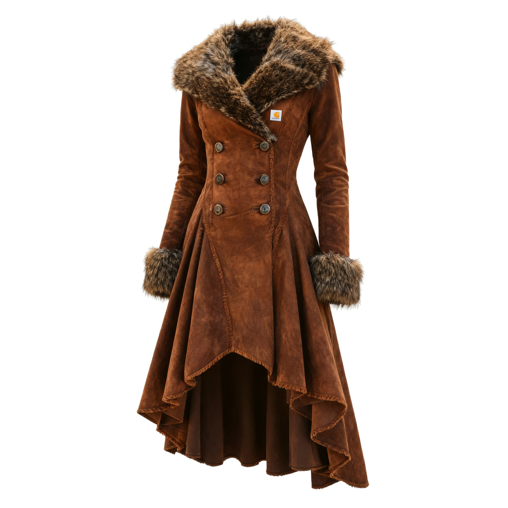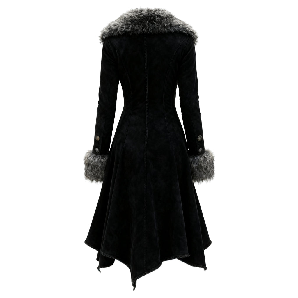 Women's Retro Western Style Suede Mid-Length Coat Fur Collar Lapel Jacket