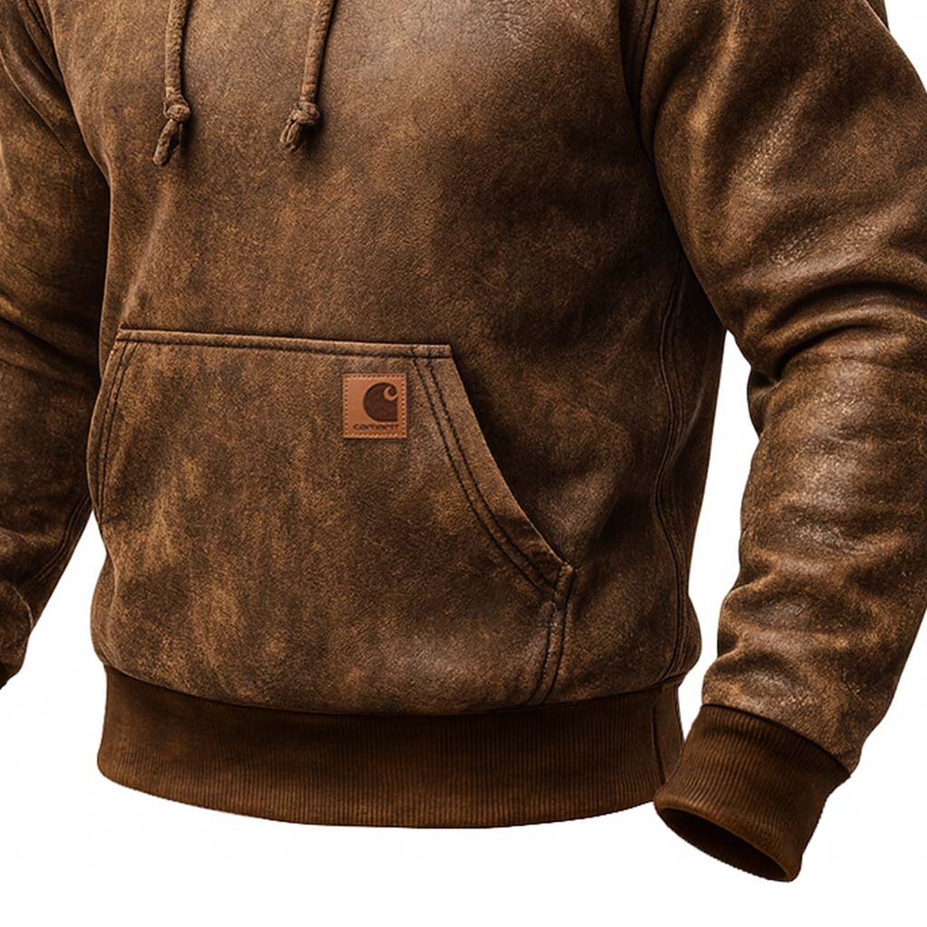 Men's Vintage Brown Leather Fleece Western Cowboy Warm Hoodie