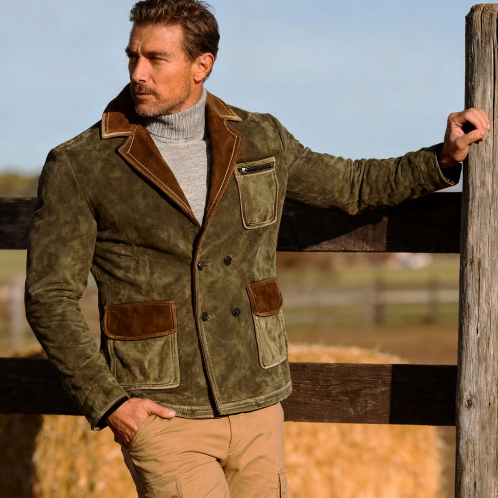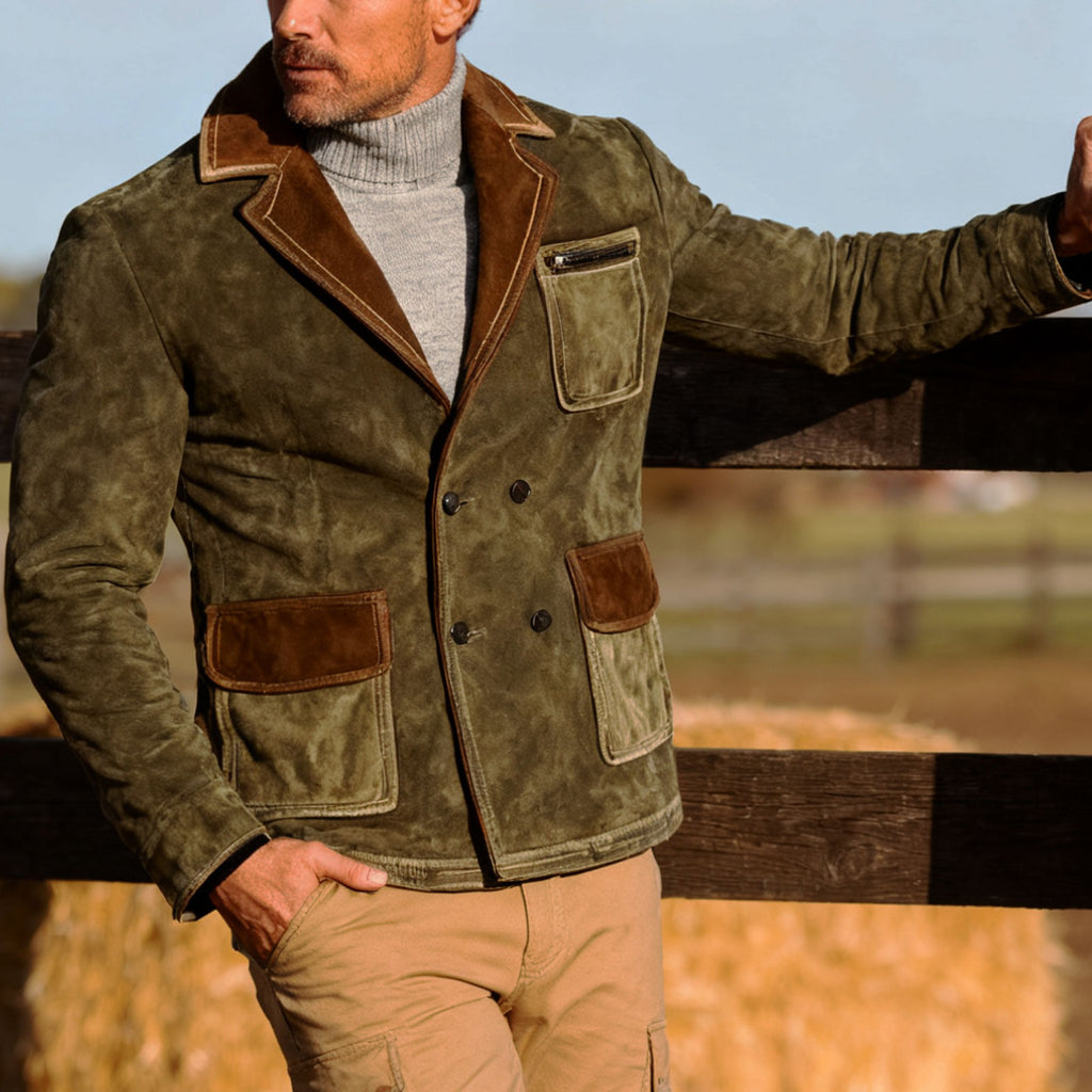• Chaqueta de cuero ajustada con cremallera y cuello alto con estampado de piedras para hombre
