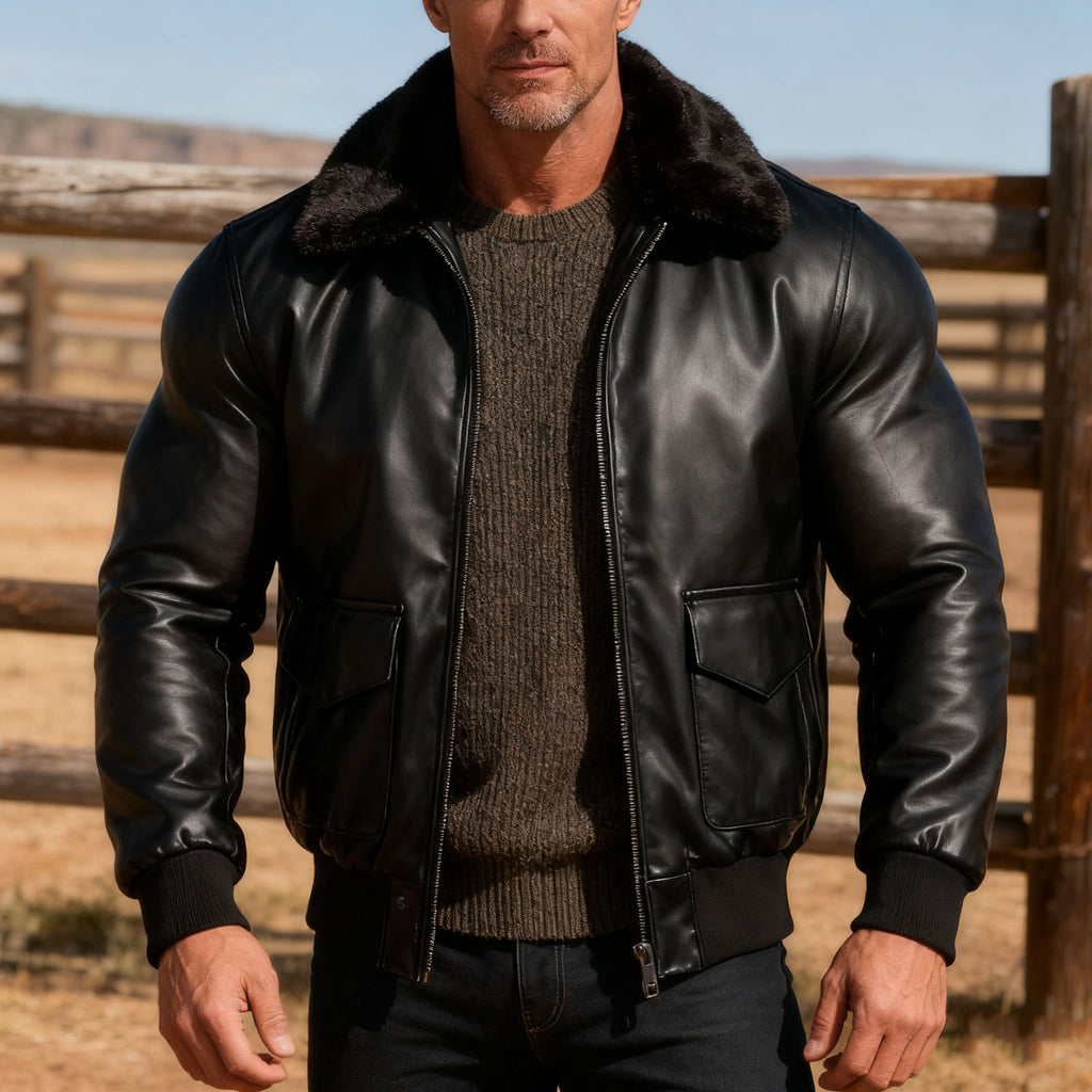 • Chaqueta de cuero ajustada con cremallera y cuello alto con estampado de piedras para hombre