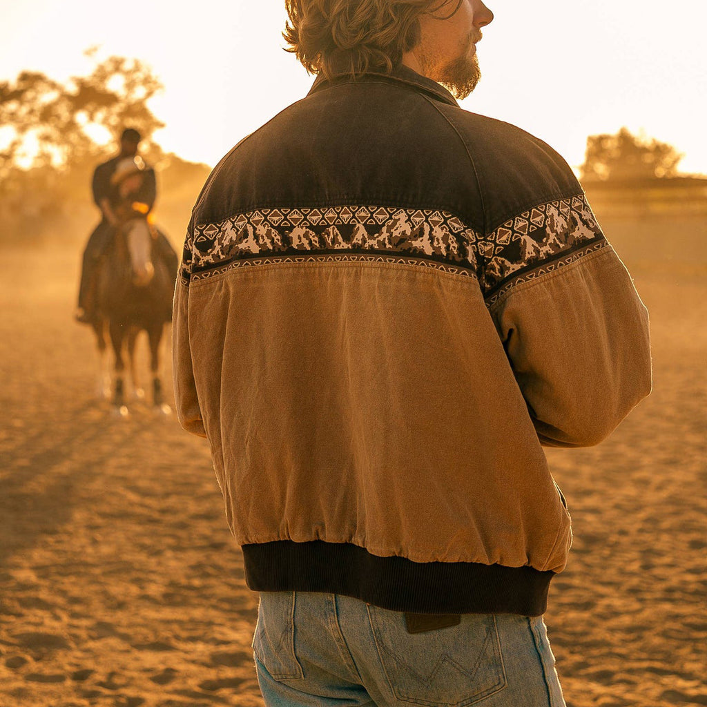 • Chaqueta de cuero ajustada con cremallera y cuello alto con estampado de piedras para hombre