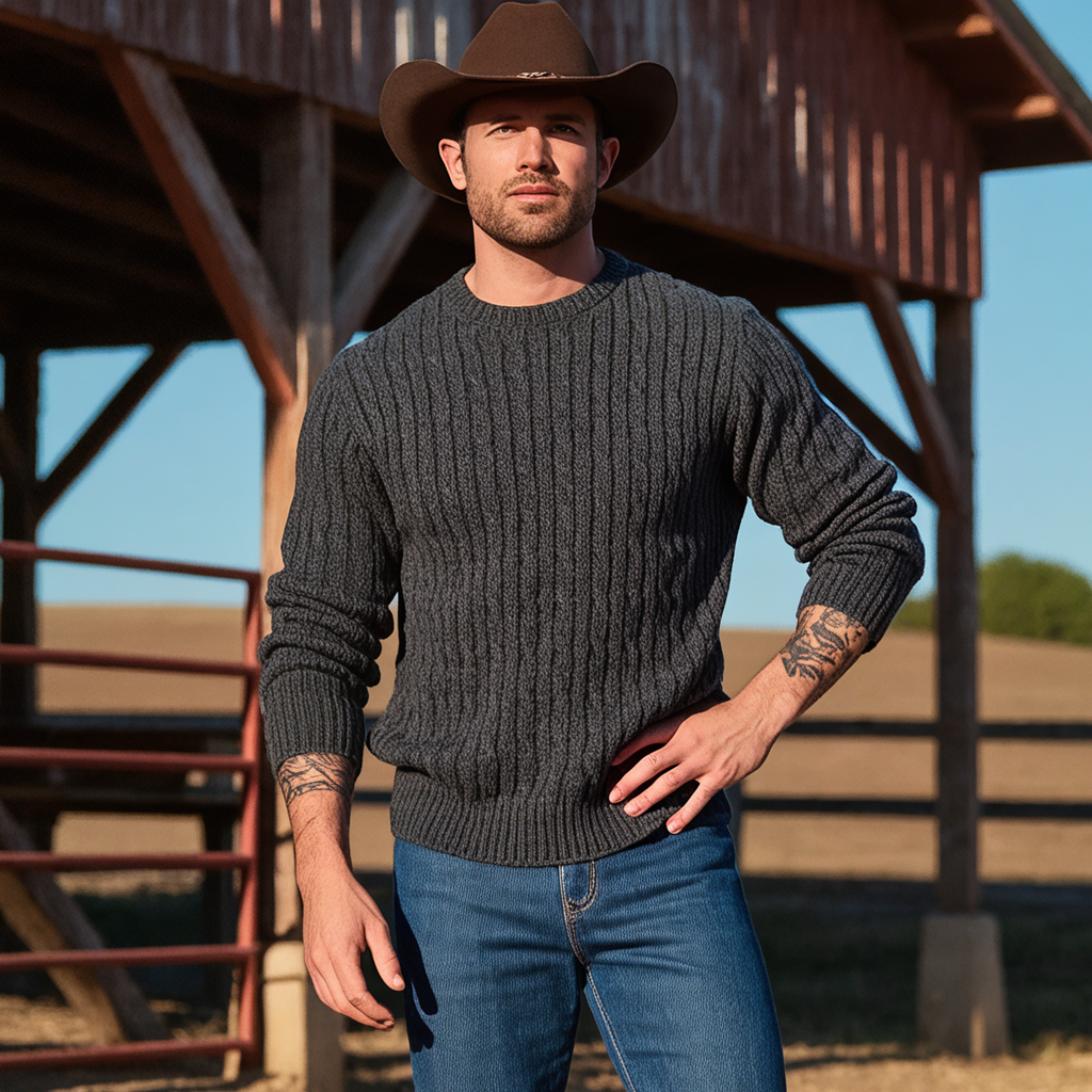 Men's Classic Ribbed Sweater With Cowboy Hat