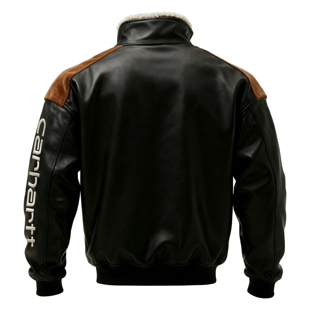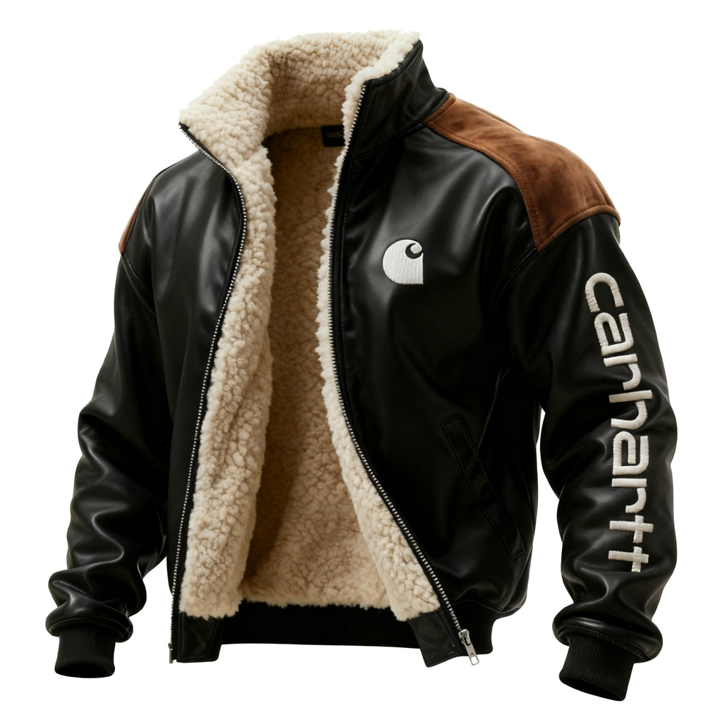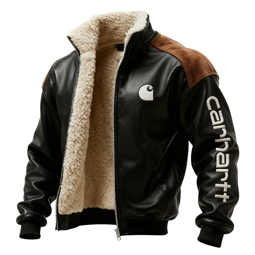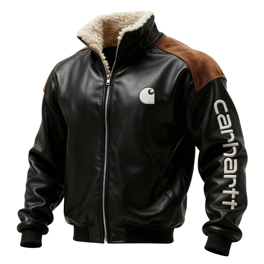 • Chaqueta de cuero ajustada con cremallera y cuello alto con estampado de piedras para hombre