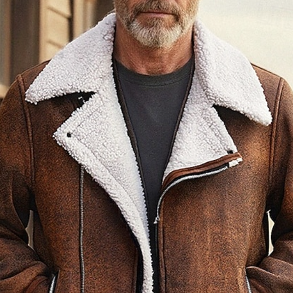 Men's Vintage Brown Faux Shearling Jacket With Warm Collar