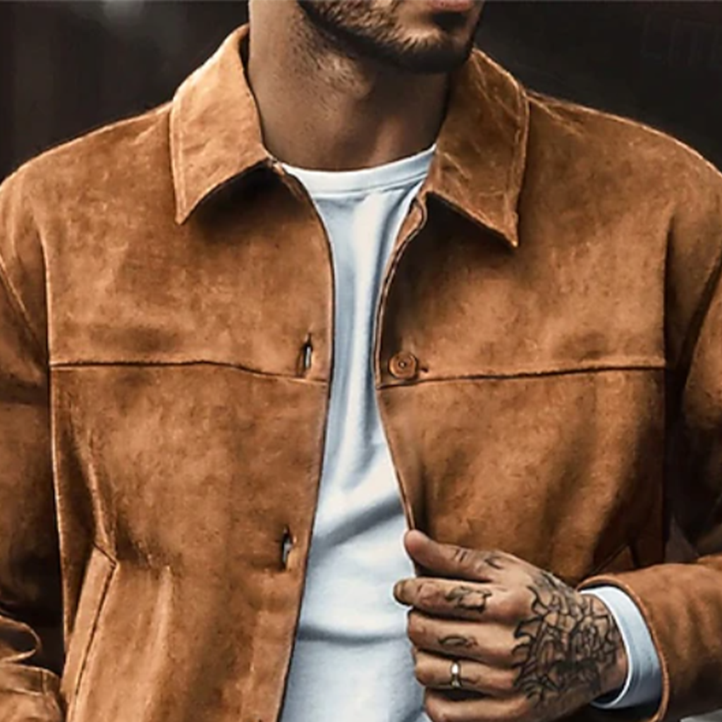 • Chaqueta de cuero ajustada con cremallera y cuello alto con estampado de piedras para hombre