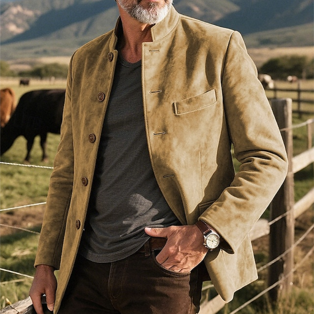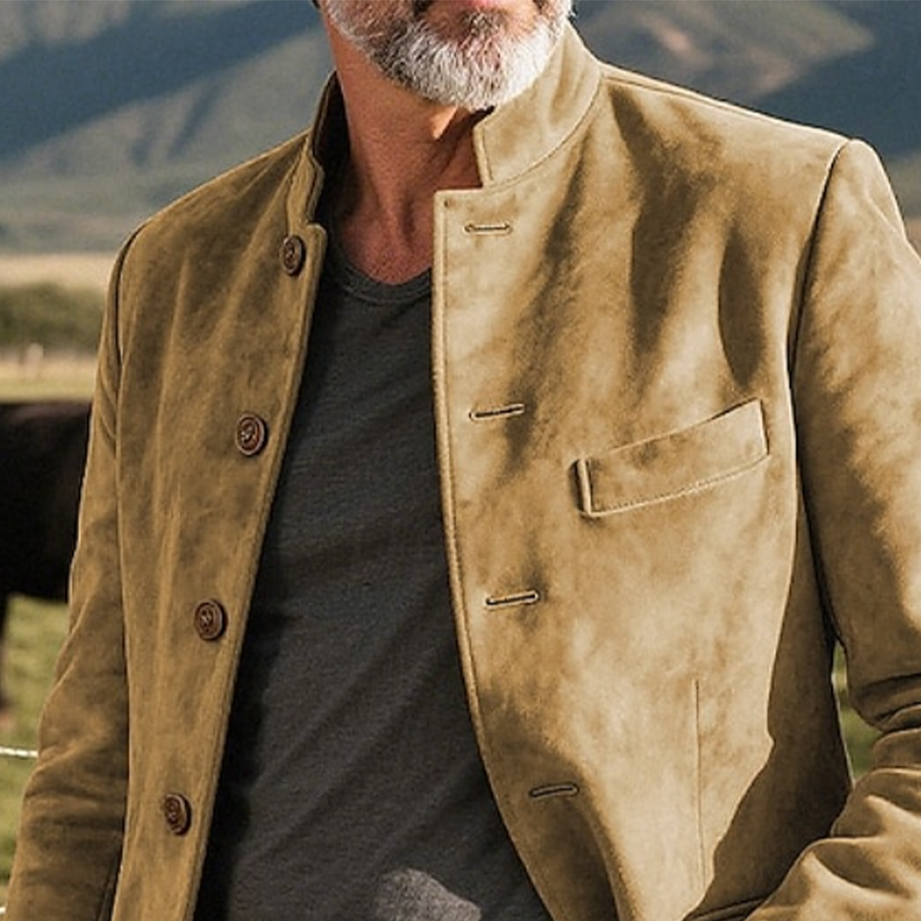 Men's Vintage Casual Elegance: Khaki Suede Jacket With A Modern Twist