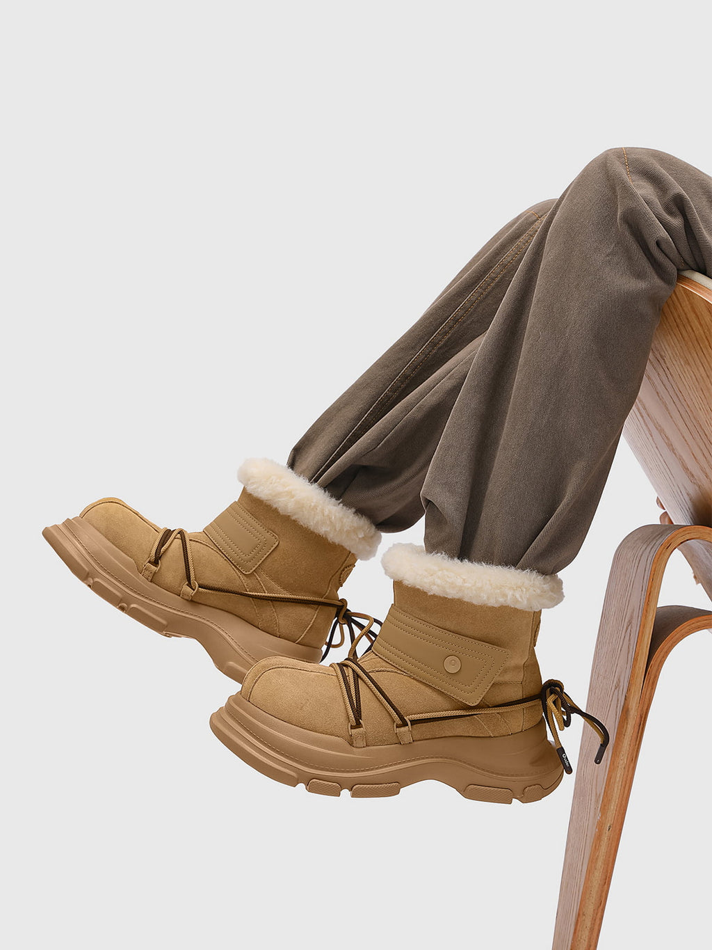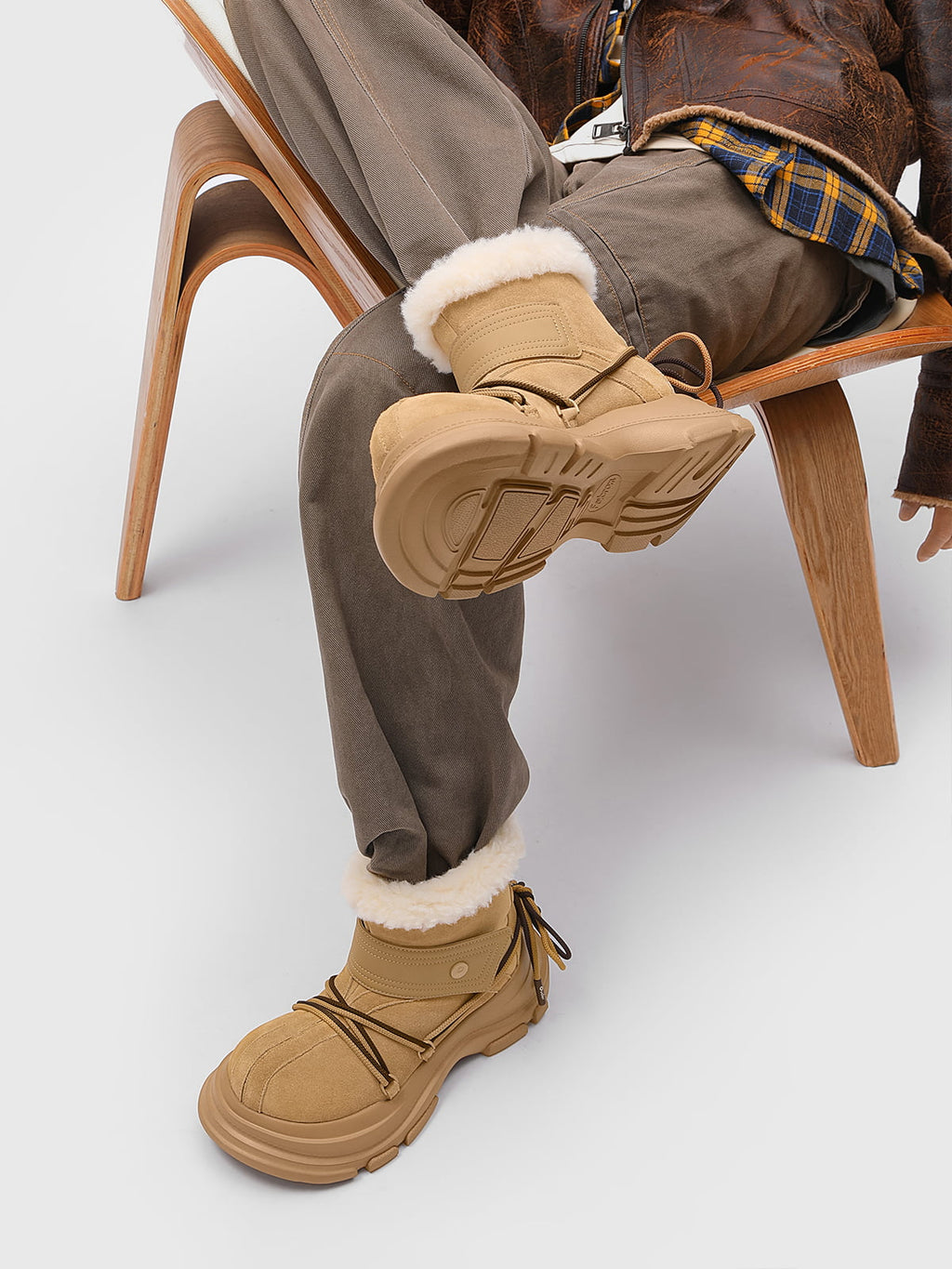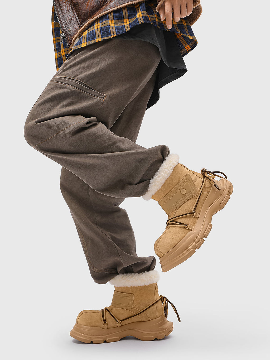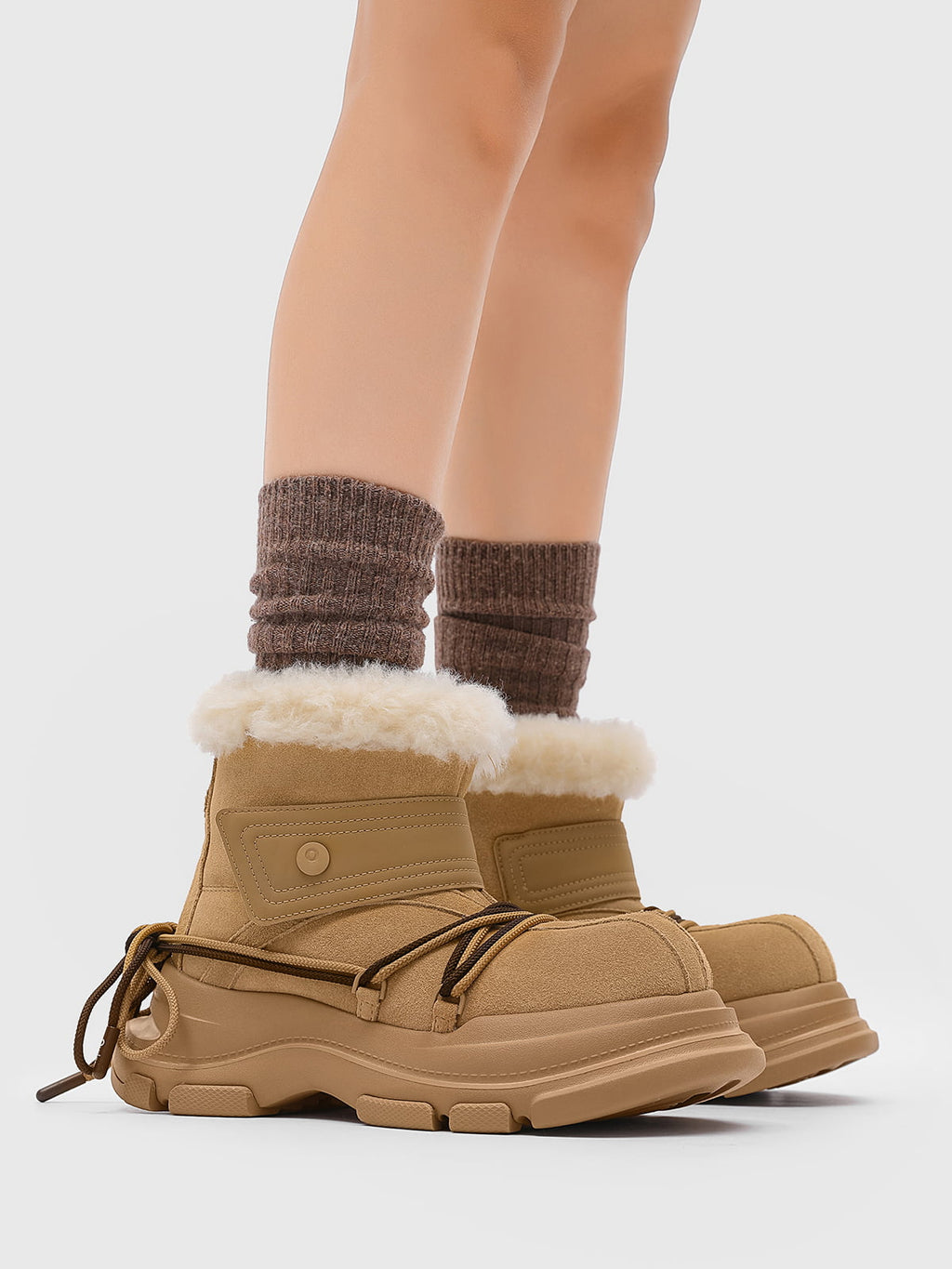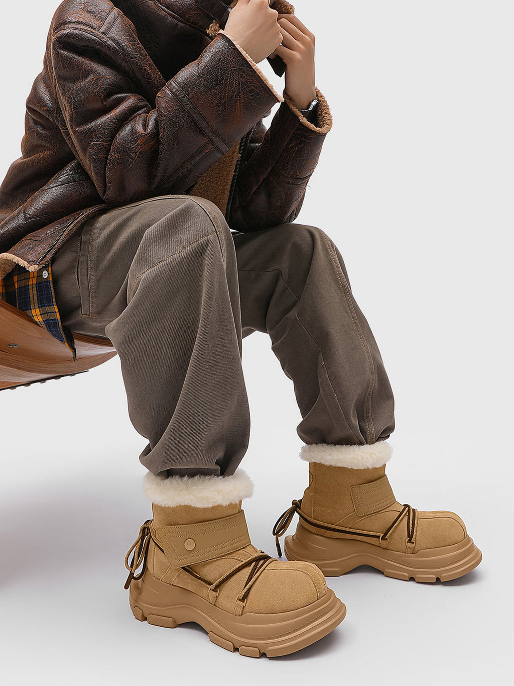 American Street Mid-calf Lace-up Waterproof And Non-slip Cowhide And Wool Big-toe Boots
