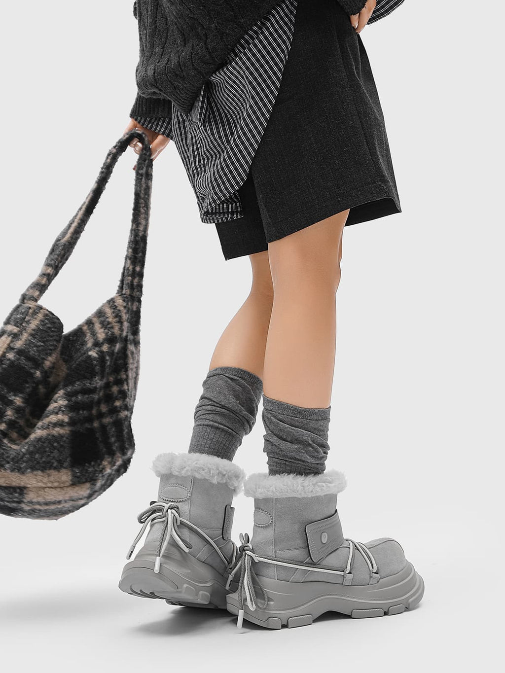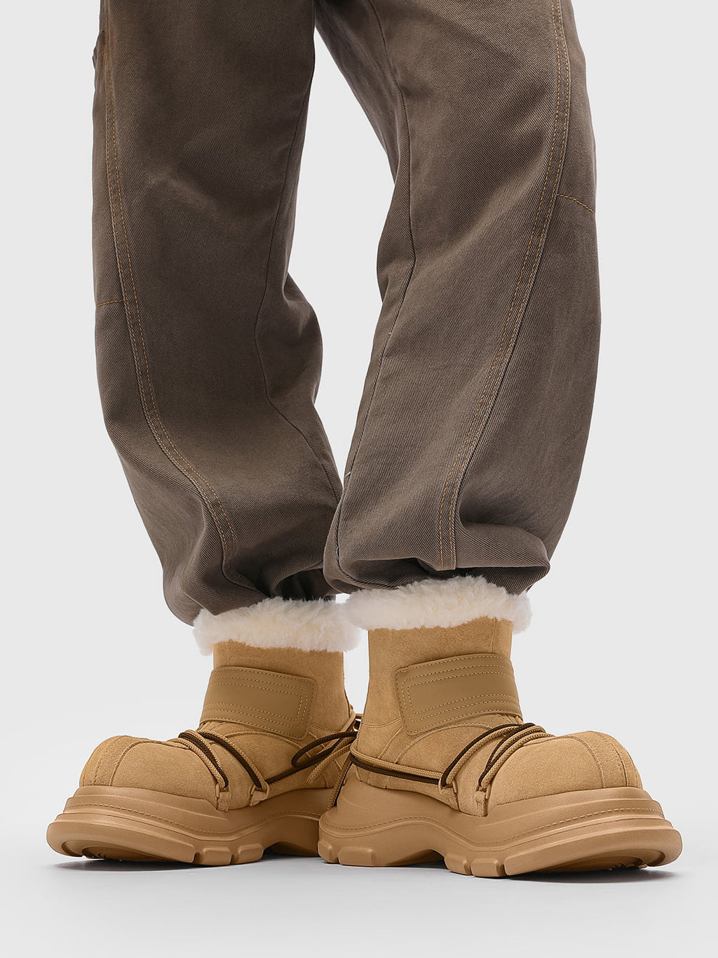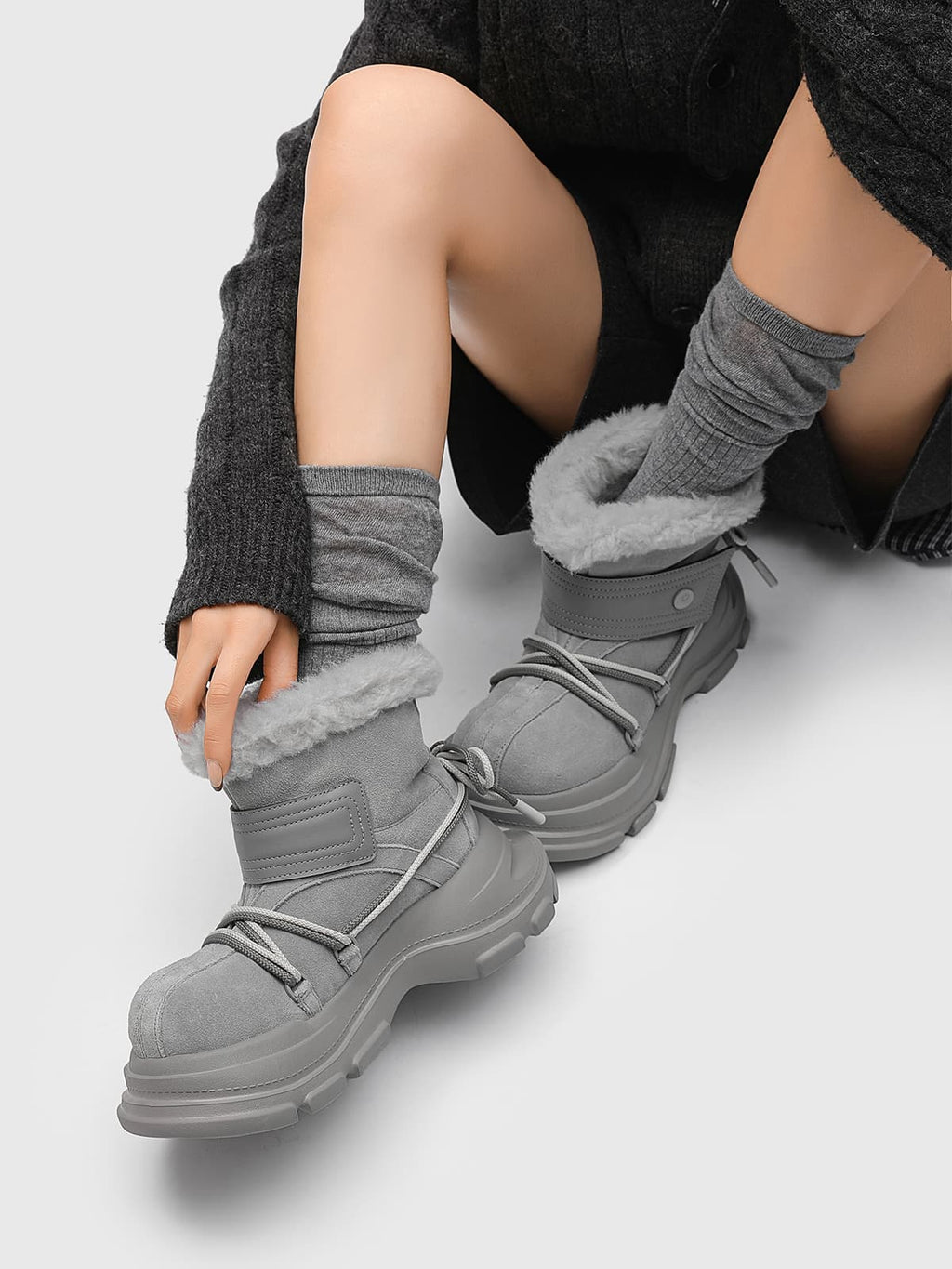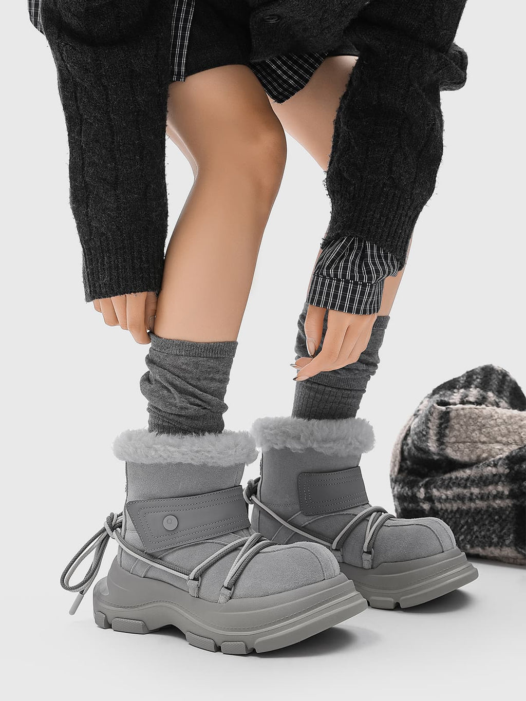 American Street Mid-calf Lace-up Waterproof And Non-slip Cowhide And Wool Big-toe Boots