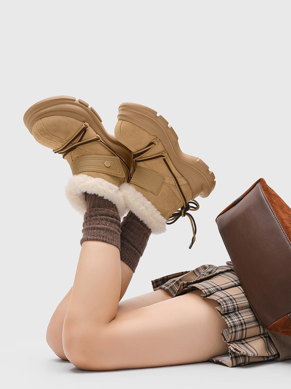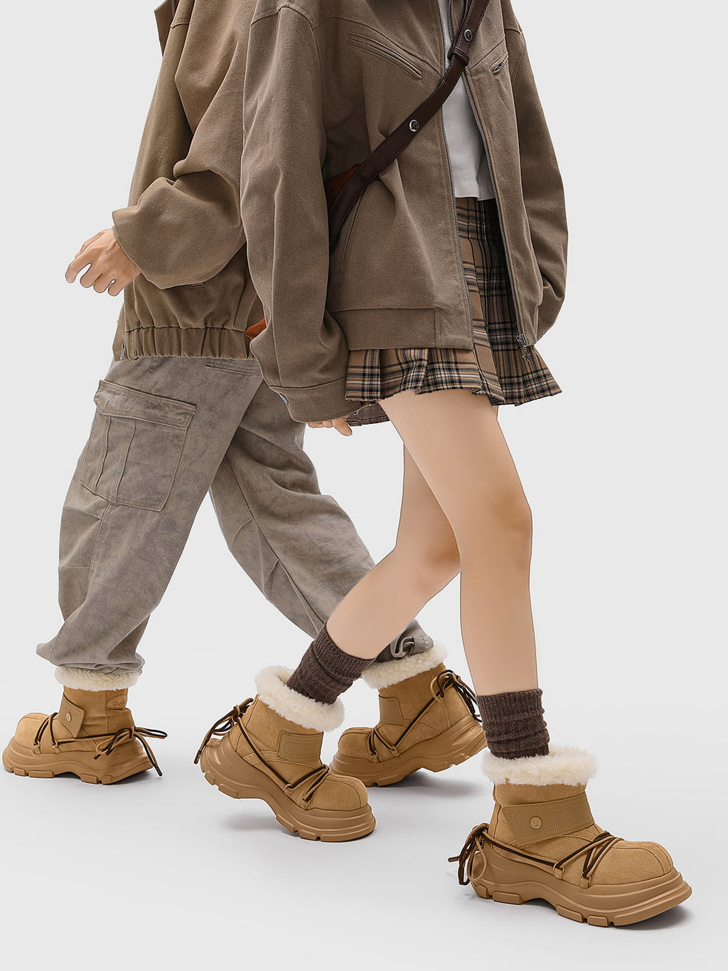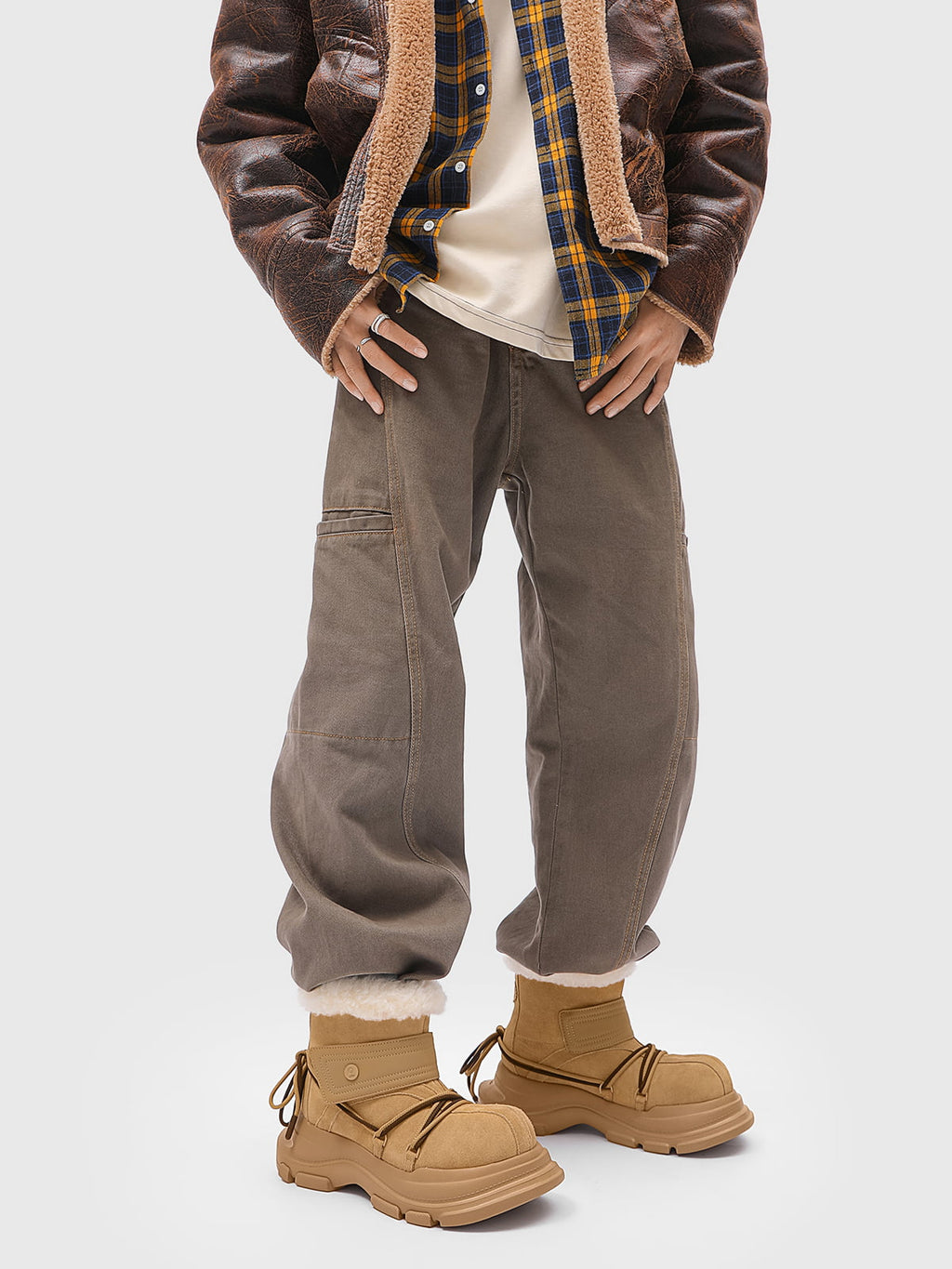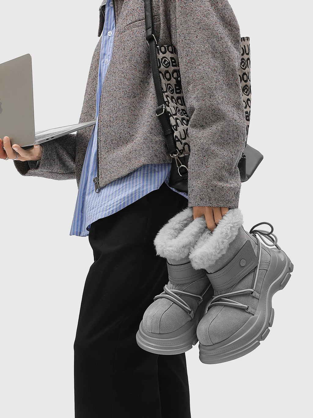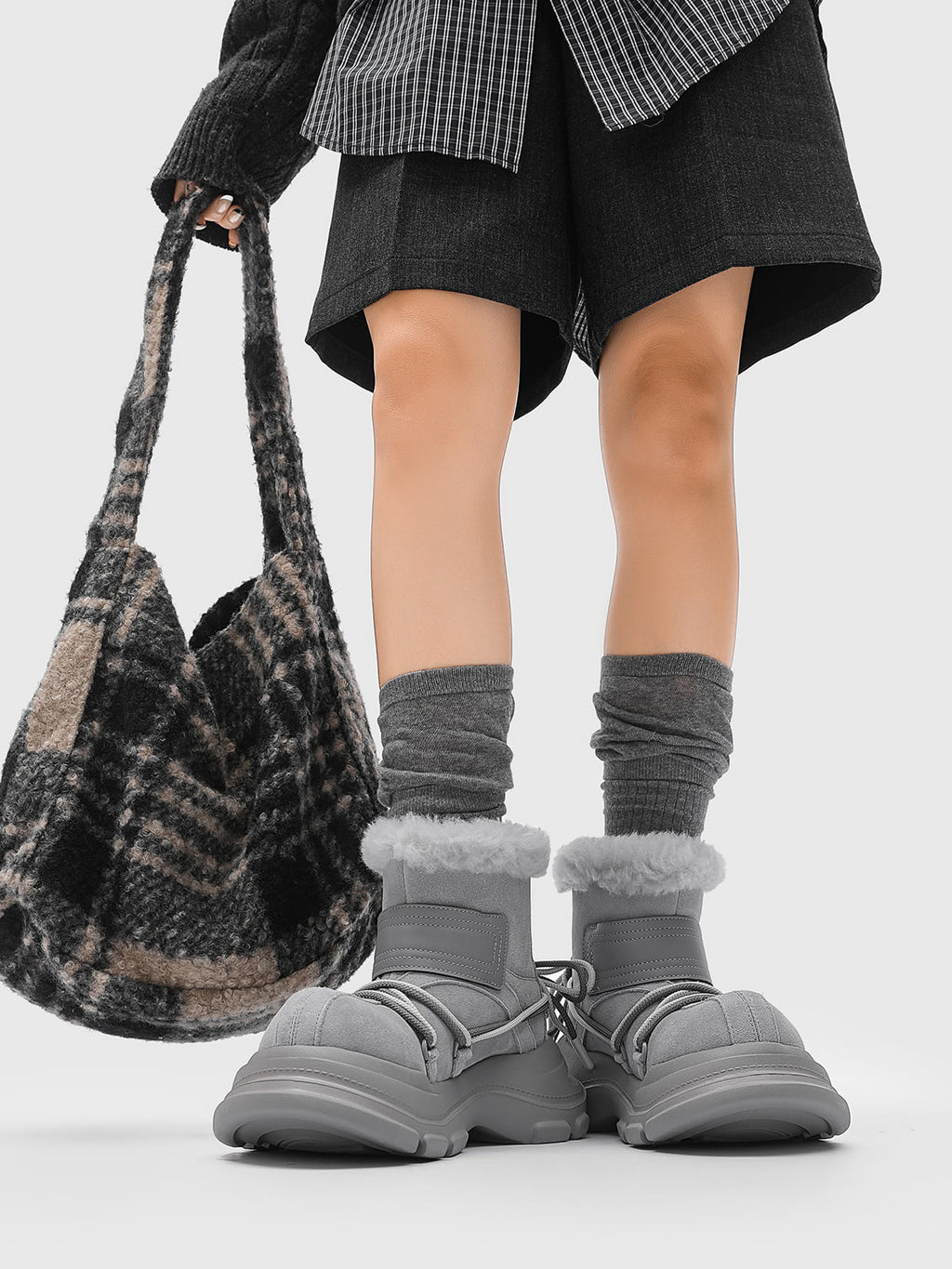 American Street Mid-calf Lace-up Waterproof And Non-slip Cowhide And Wool Big-toe Boots