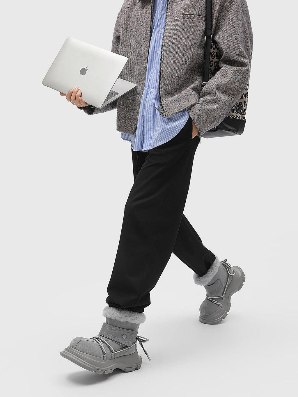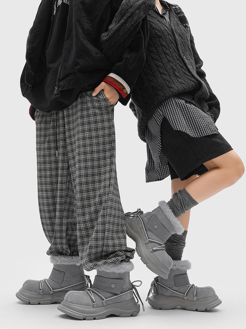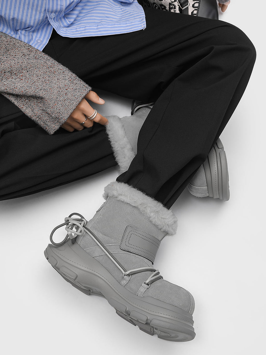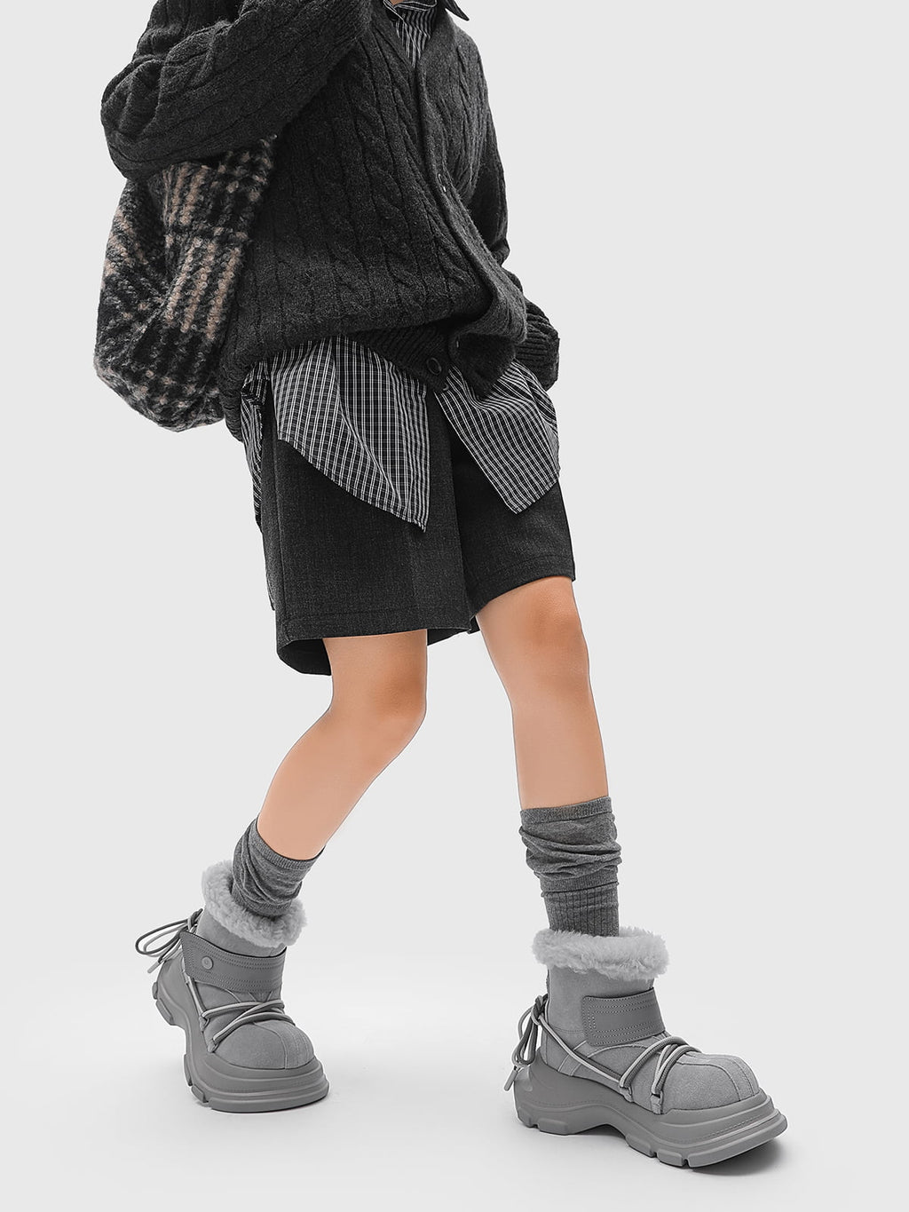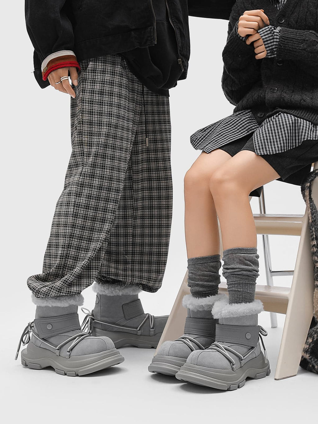 American Street Mid-calf Lace-up Waterproof And Non-slip Cowhide And Wool Big-toe Boots