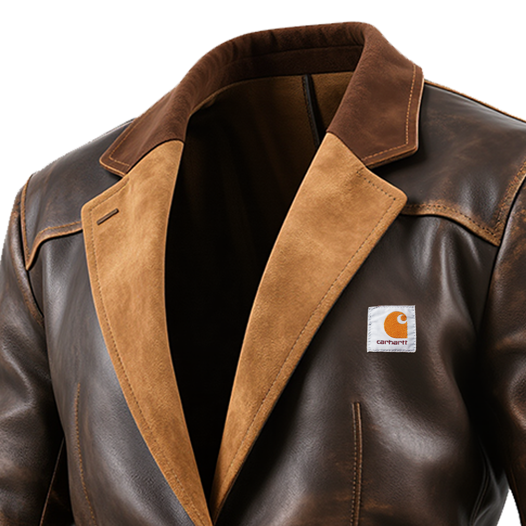 • Chaqueta de cuero ajustada con cremallera y cuello alto con estampado de piedras para hombre