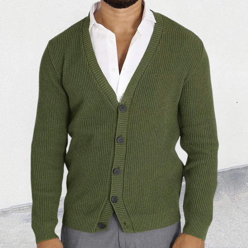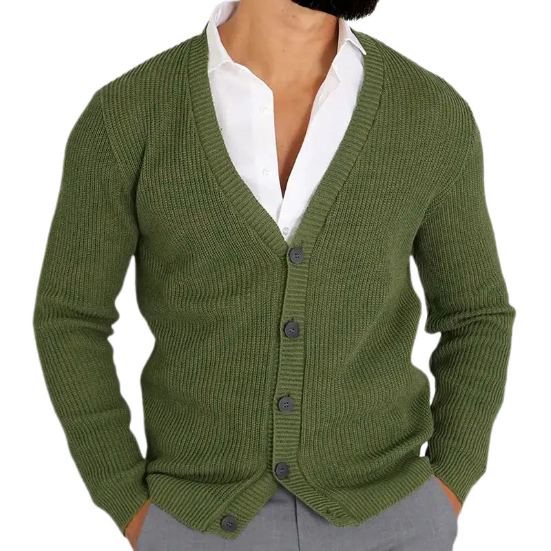 Olive Green V-Neck Cardigan For Men - Stylish And Comfortable Knitwear