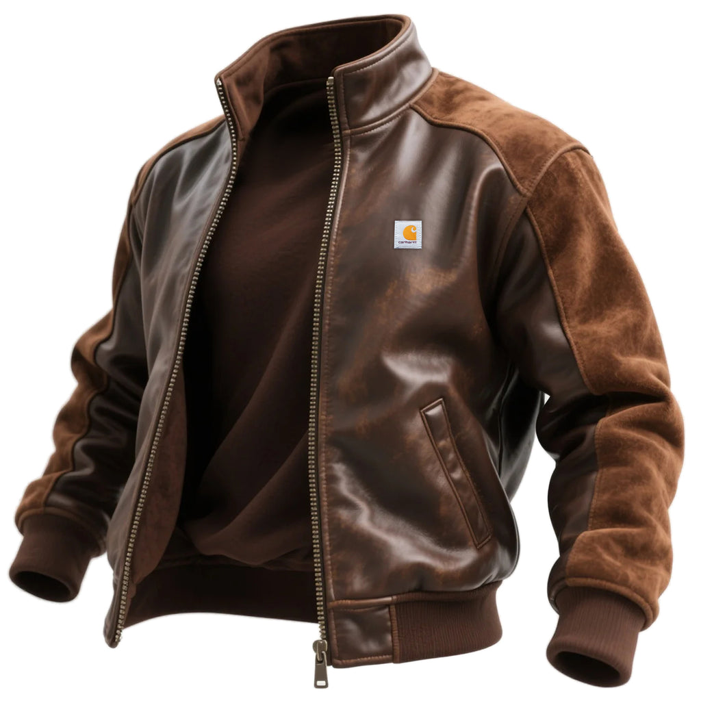 Retro Contrast Color Stitching Suede And Leather Stand Collar Zipper Cardigan Jacket
