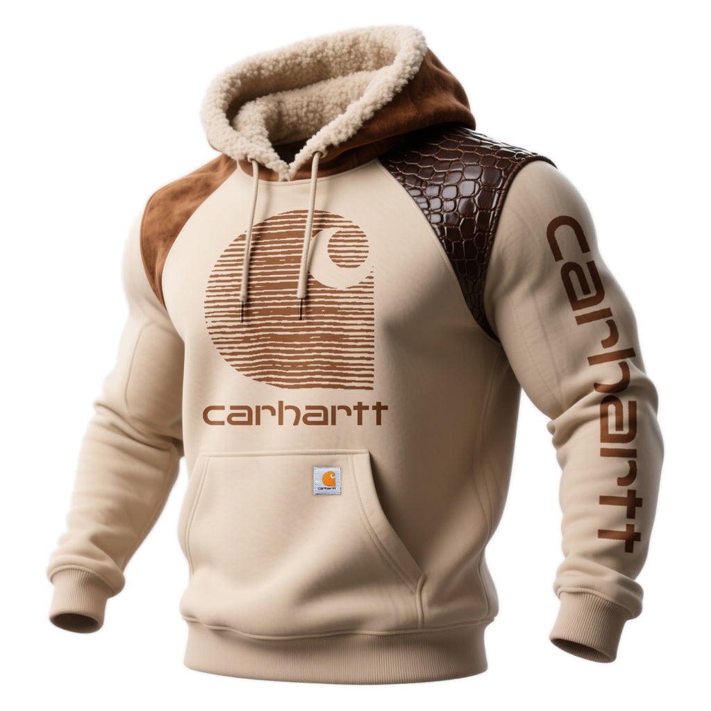 Men's Outdoor Vintage Style Leather Panel Hooded Sweatshirt