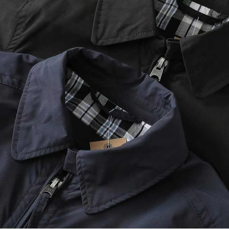 •    Design Elements: Embroidered sleeve patch, plaid inner lining, classic collar design