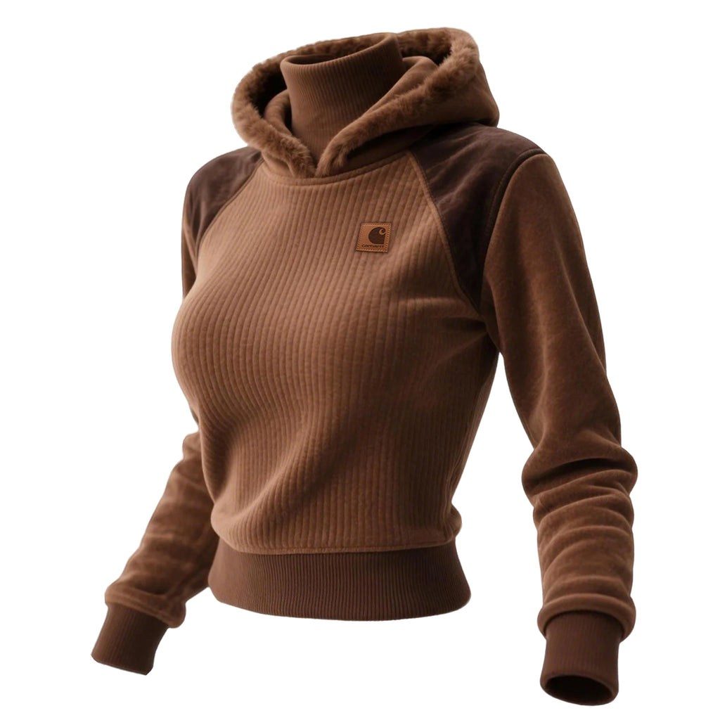 Women's Vertical Stitching Suede Ribbed Stand-up Collar High Collar Hooded Sweatshirt Double Collar Top