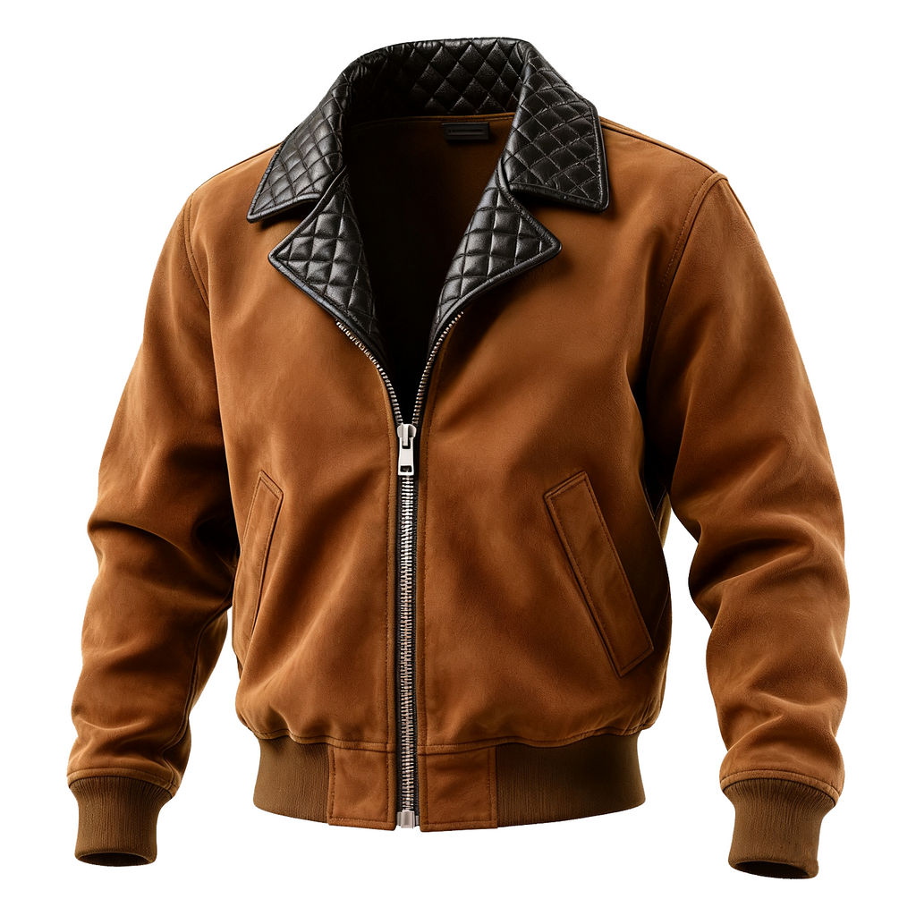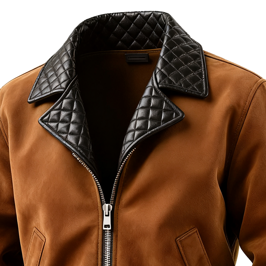 Men's Vintage Brown Quilted Collar Bomber Jacket