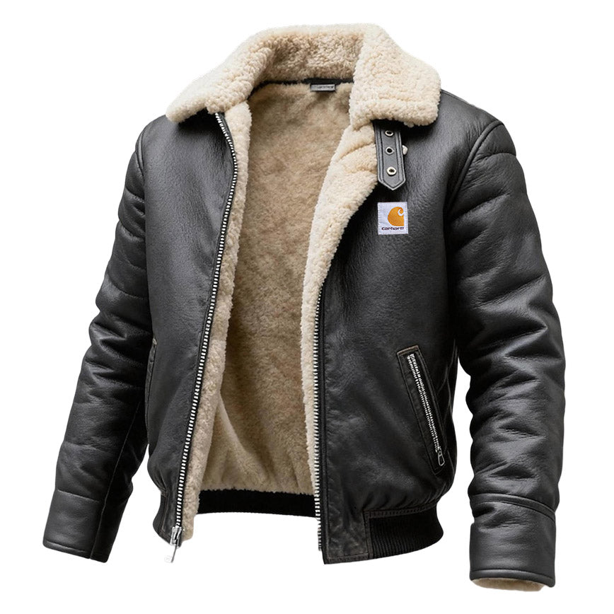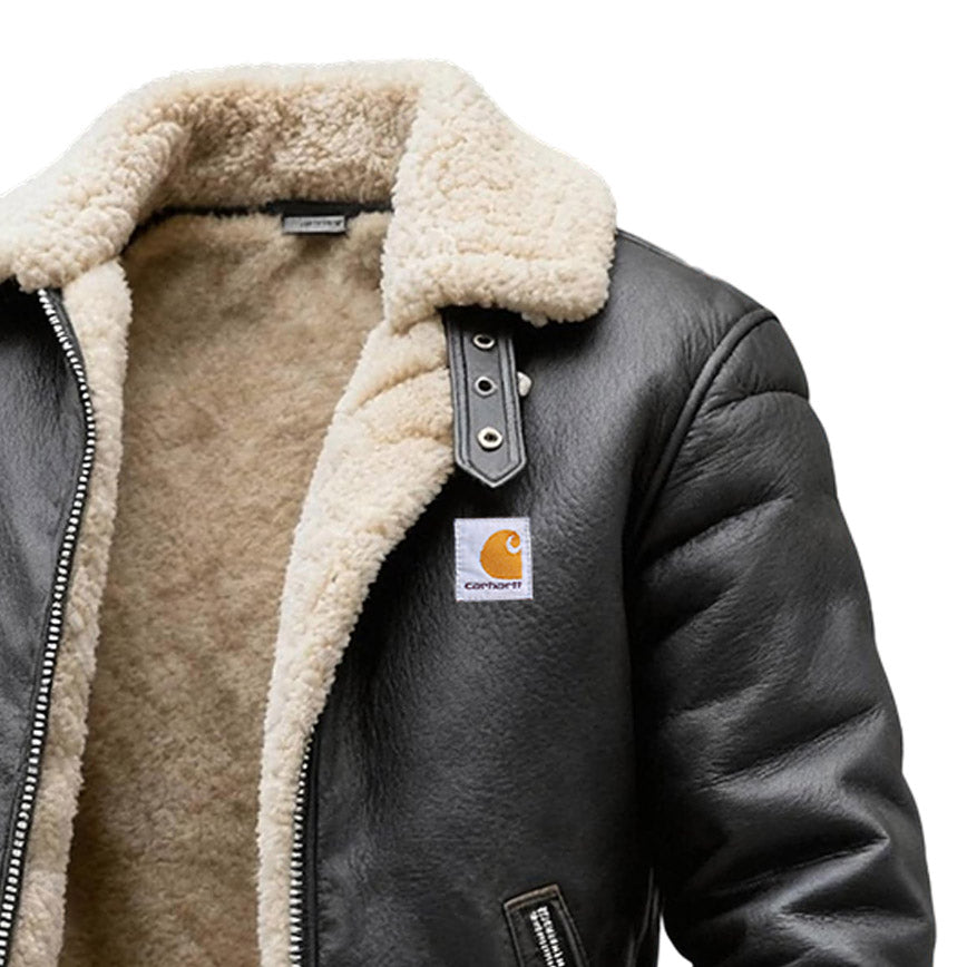 Men's Vintage Gray Leather Fleece Lapel Jacket