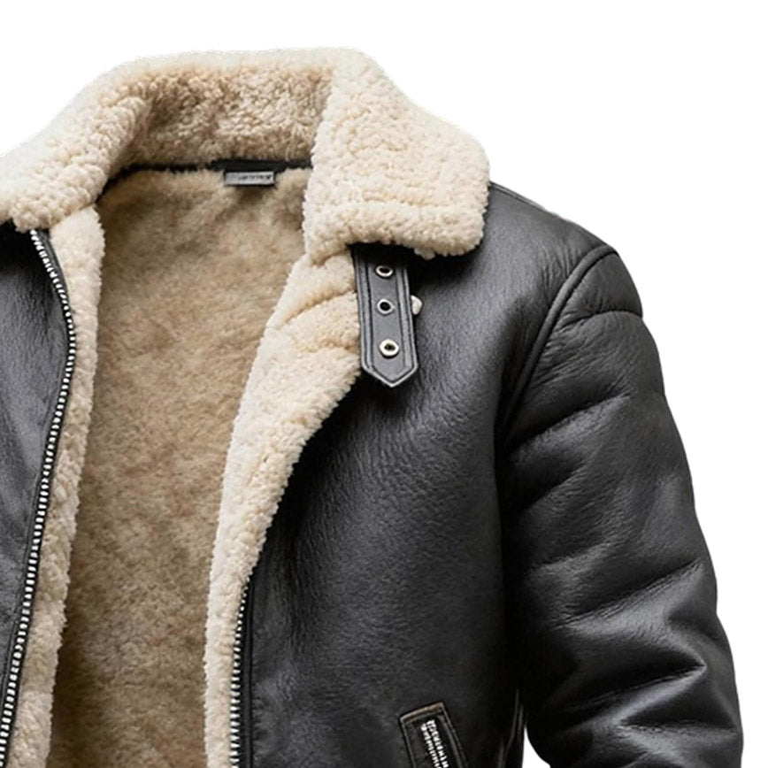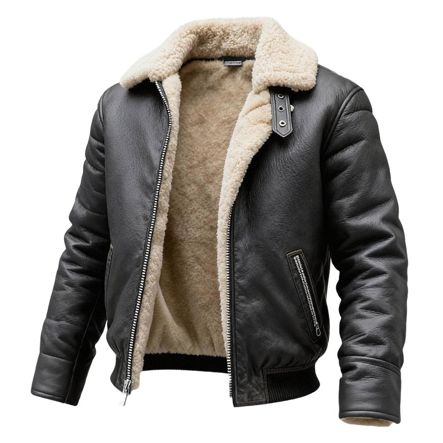 Men's Vintage Gray Leather Fleece Lapel Jacket