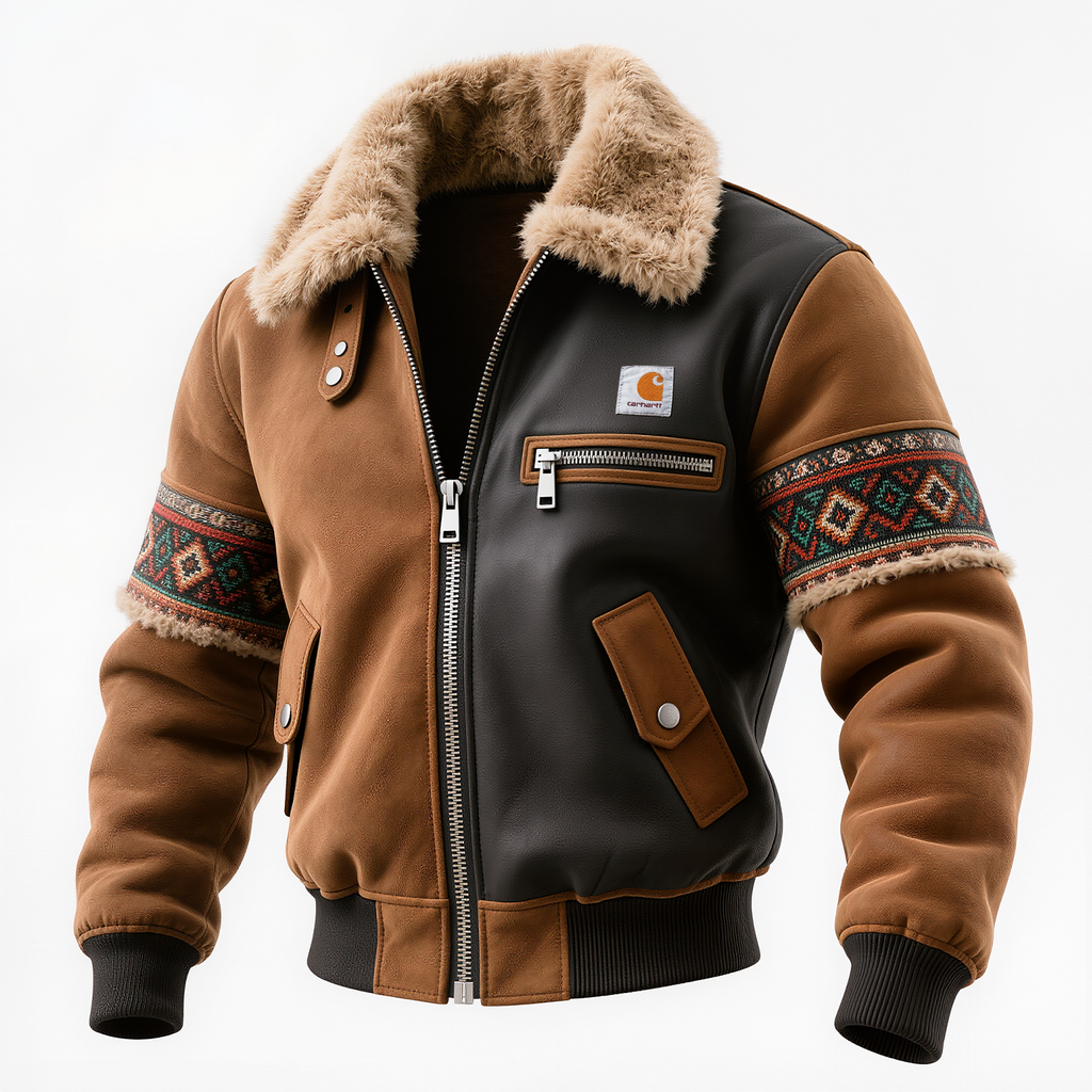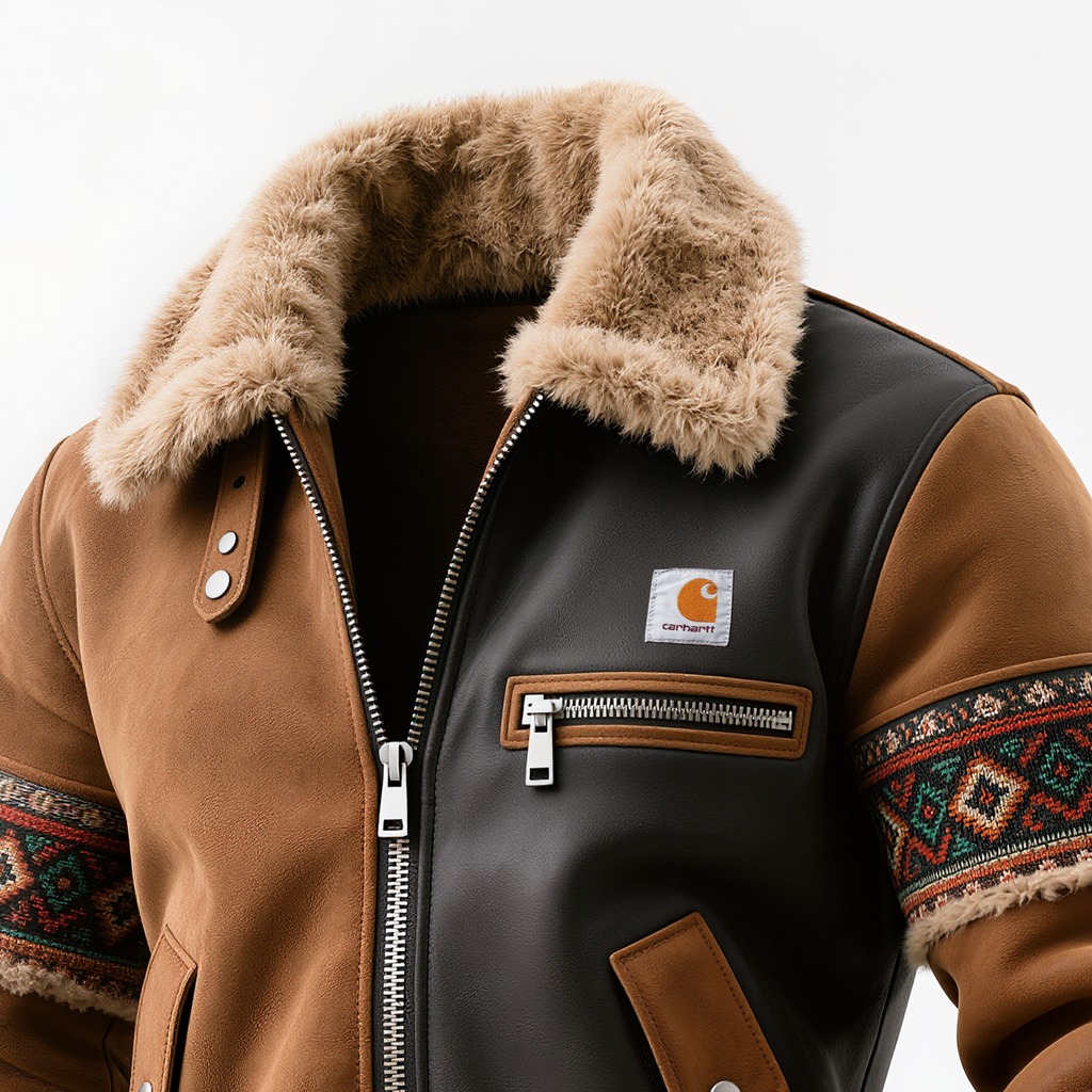 • Design Elements: Faux Fur Collar, Ethnic Pattern Sleeves