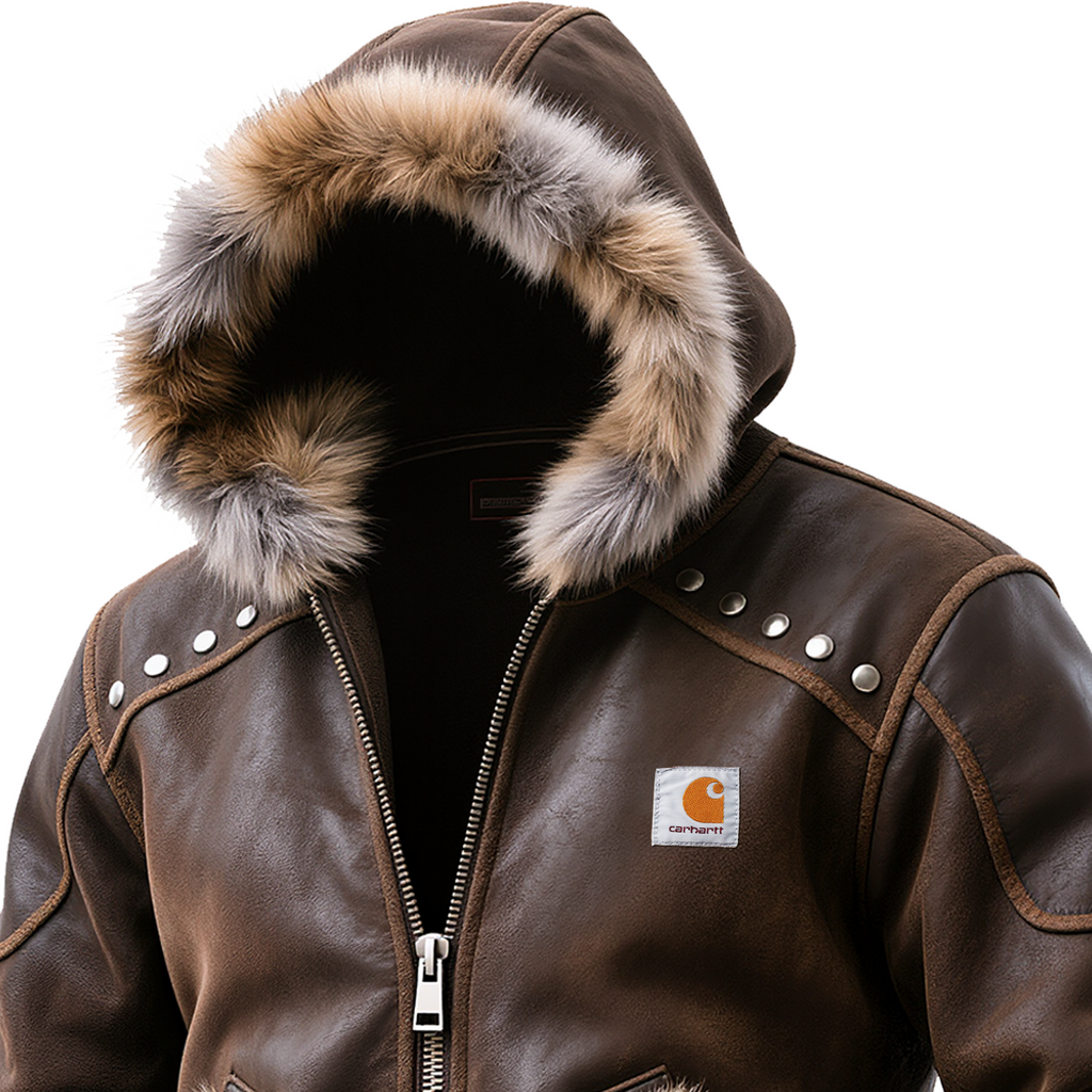 • Design Elements: Detachable Fur Trim on Hood, Zippered Pockets, Shoulder Studs for Reinforcement