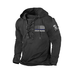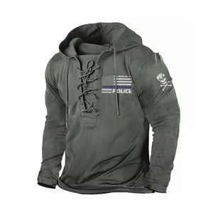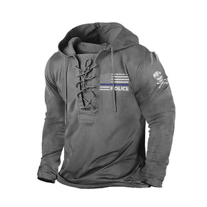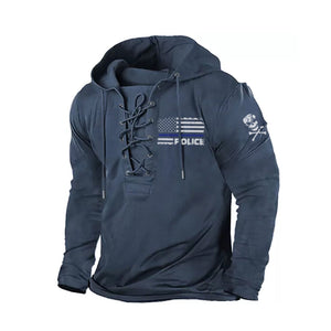 USA POLICE GRAPHIC PULLOVER BANDAGE HOODIE