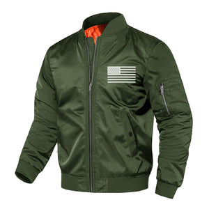 USA FLAG THICKEN WINDPROOF QUILTED ZIPPER POCKET GRAPHIC BOMBER JACKET