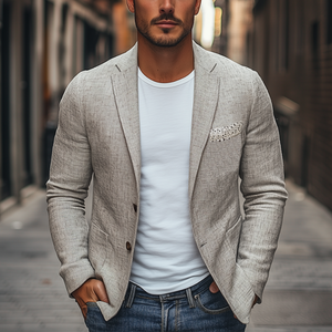 Nombre del producto: Blazer de algodón y lino con bolsillos y encaje personalizado de primavera para hombre.