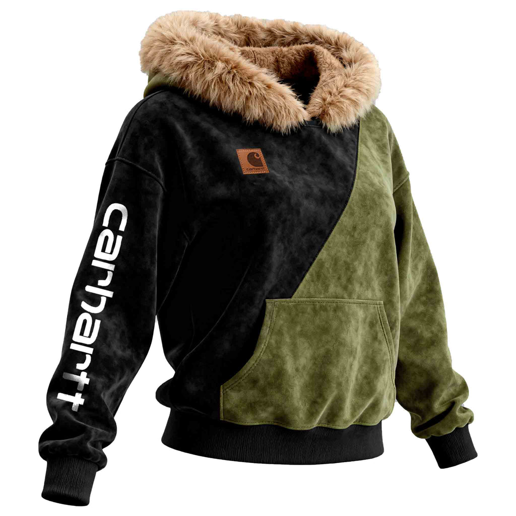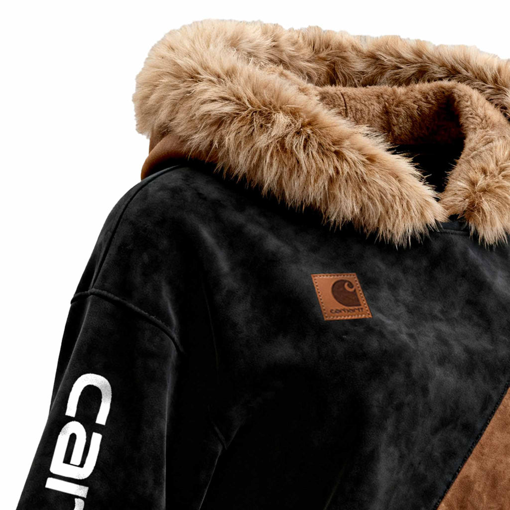 • Design Elements: Diagonal Color Block Pattern, Faux Fur Collar, Logo Patch on Sleeve
