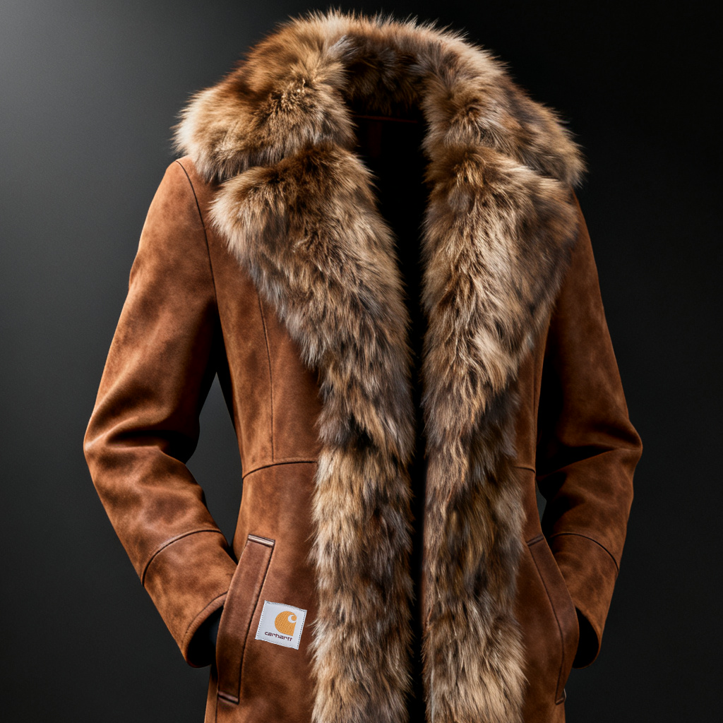 Women's Vintage Suede Coat Jacket With Fur Collar Brown