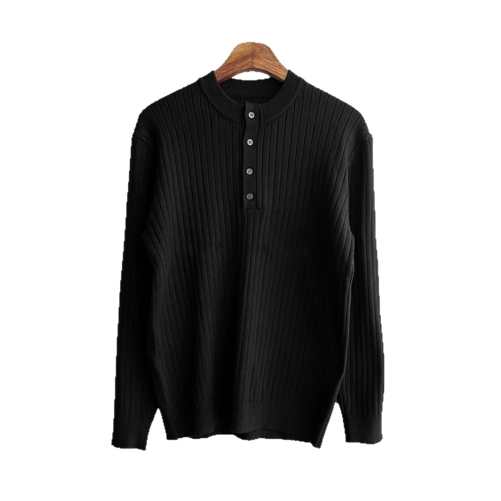 •    Design Elements: Vertical ribbed texture, buttoned placket, classic henley collar