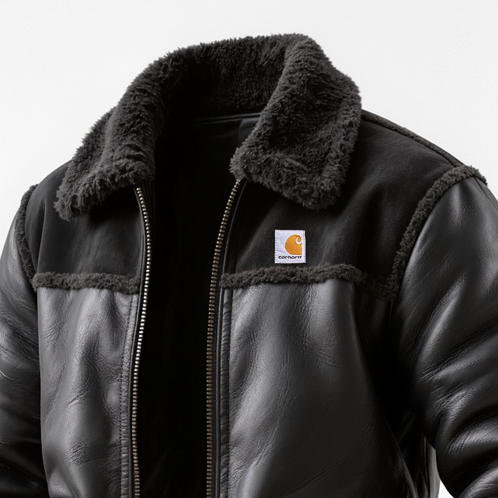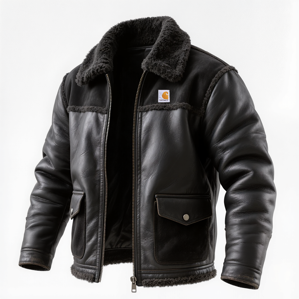Men's Outdoor Cycling Black Leather Jacket With Faux Fur Lining