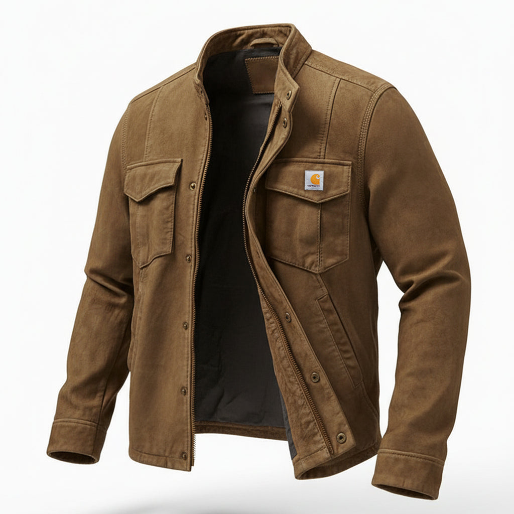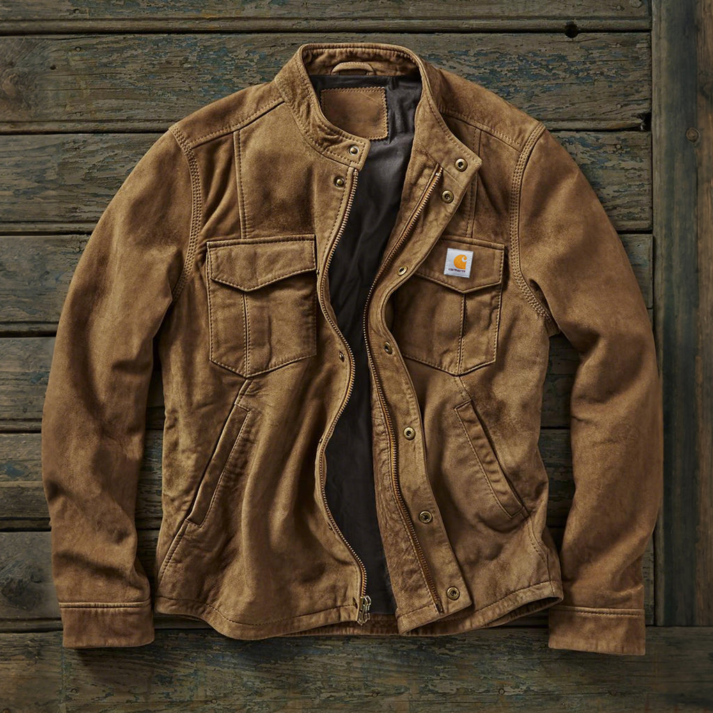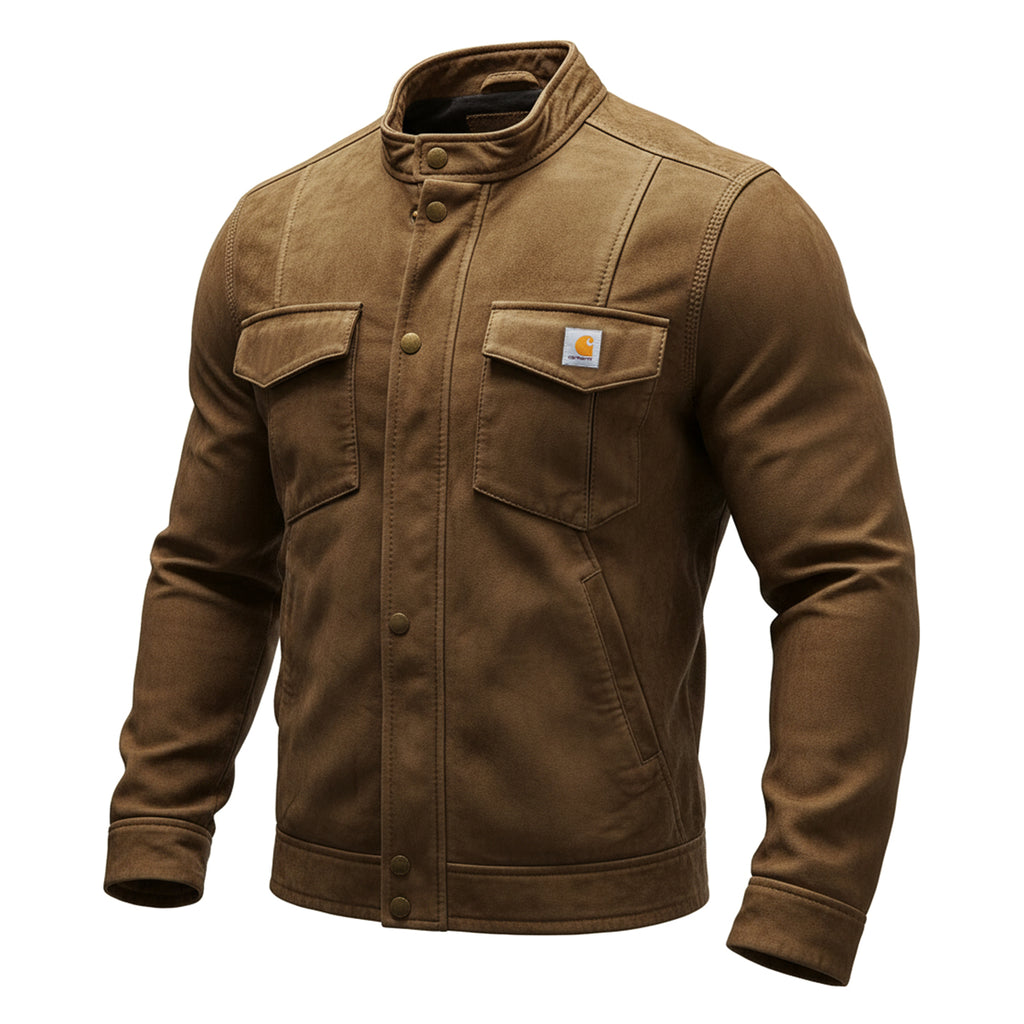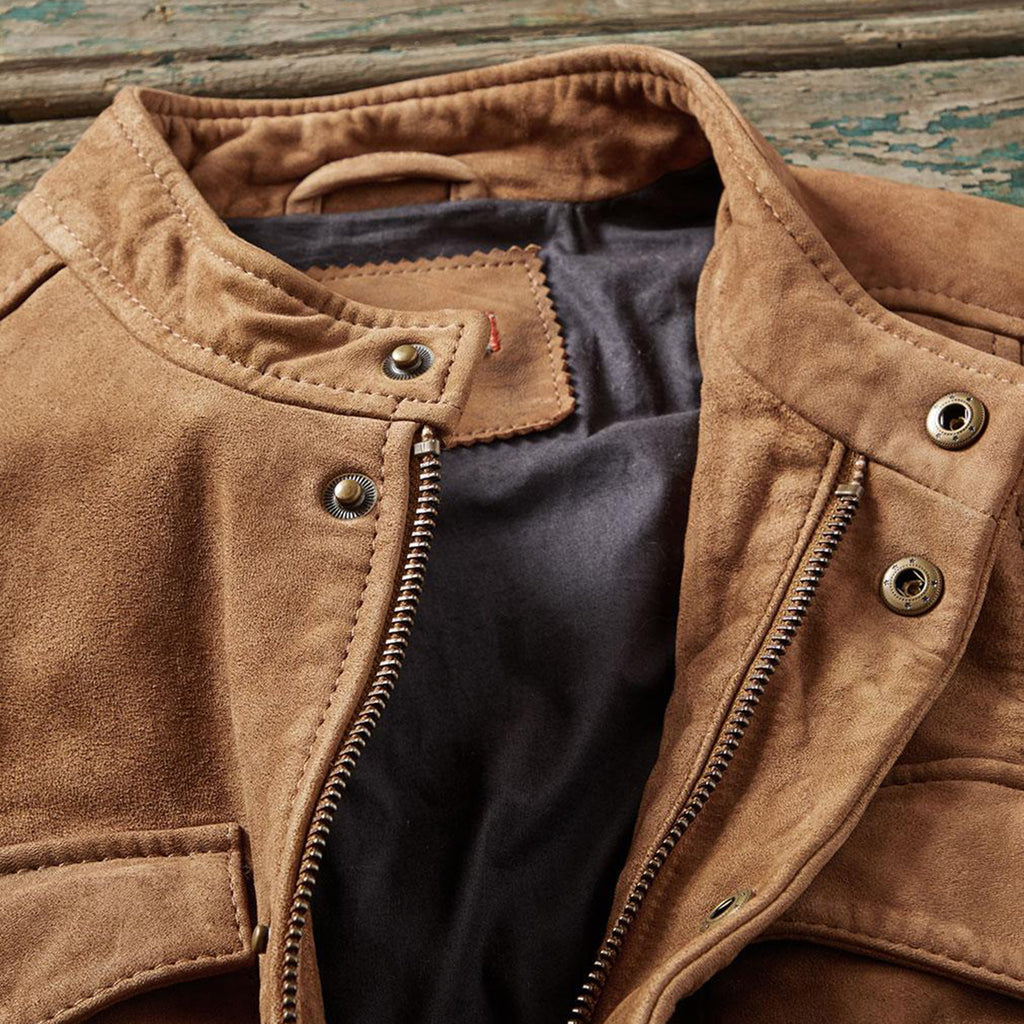 • Men's Fashion Stone Pattern Stand Collar Zipper Slim Fit Leather Jacket