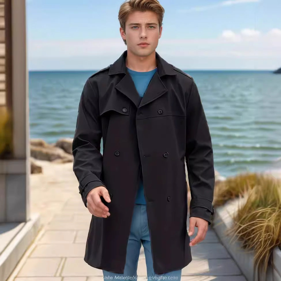 Classic Double-Breasted Trench Coat For Men - Stylish And Versatile Outerwear