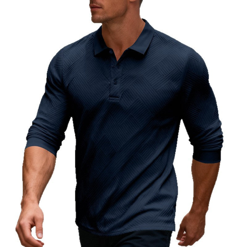 Men's Stylish Long Sleeve Polo Shirt With Geometric Pattern