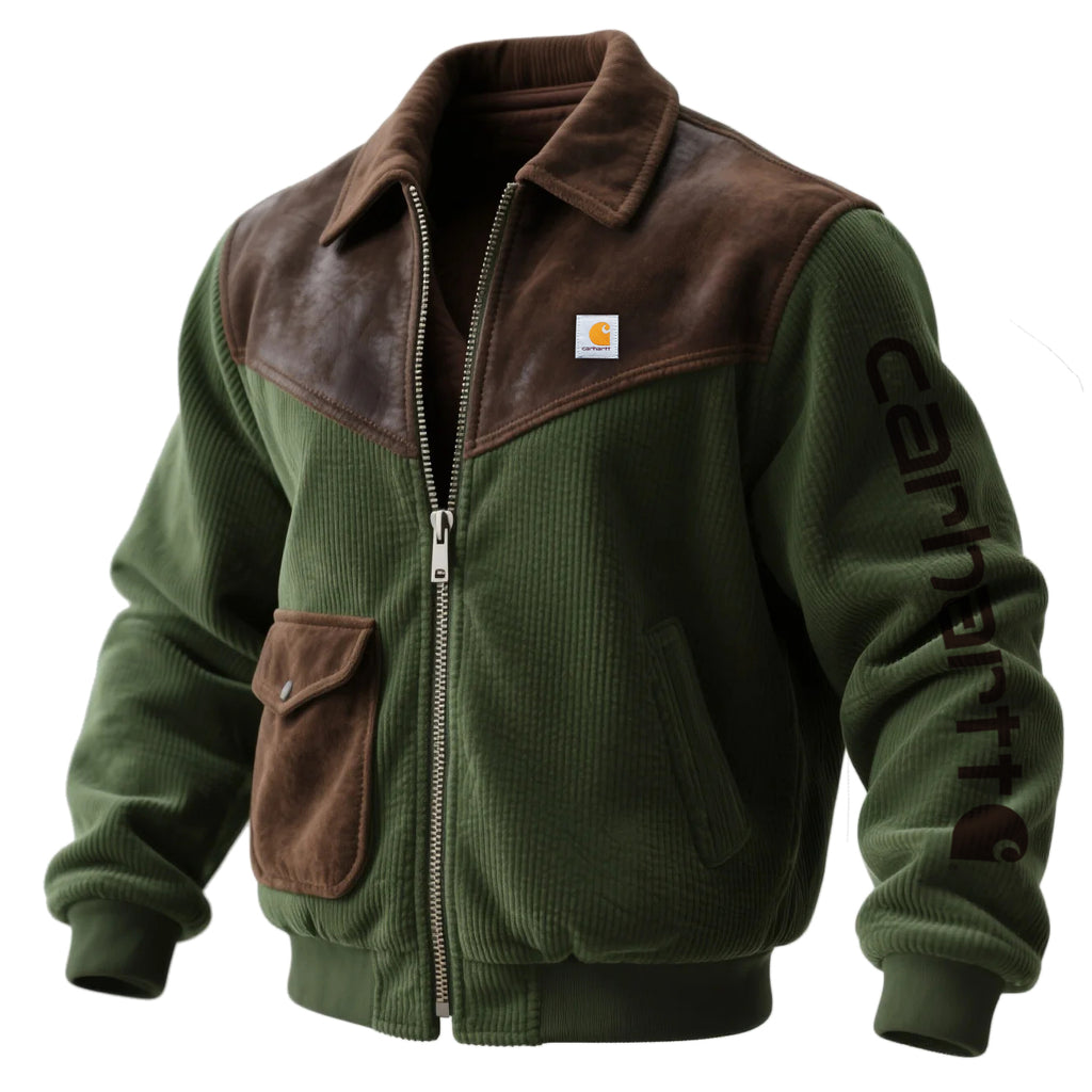 Retro Contrast Color Stitching Suede Stitching Corduroy Zipper Lapel Cardigan Jacket