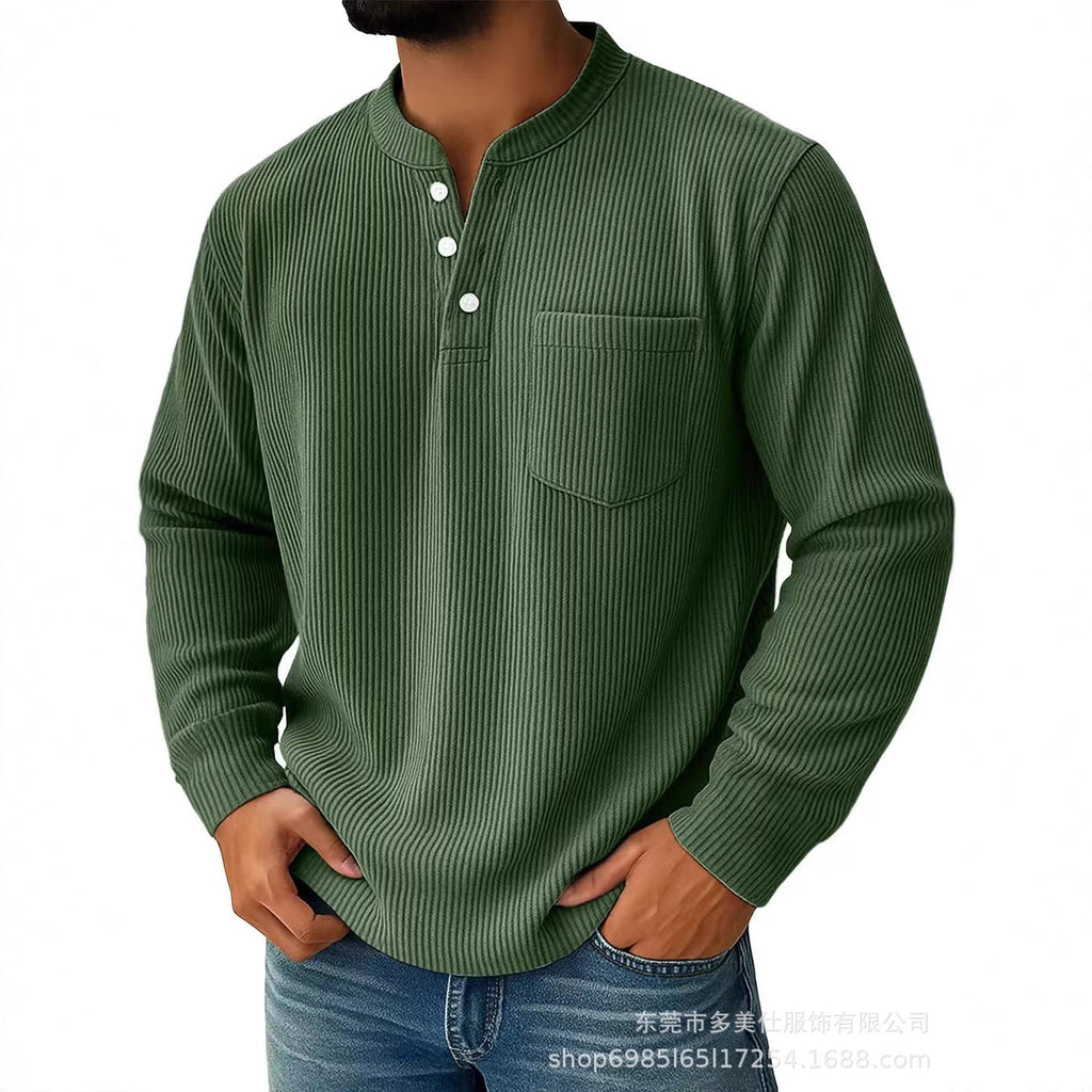 • Design Elements: Chest pocket, button placket, ribbed texture