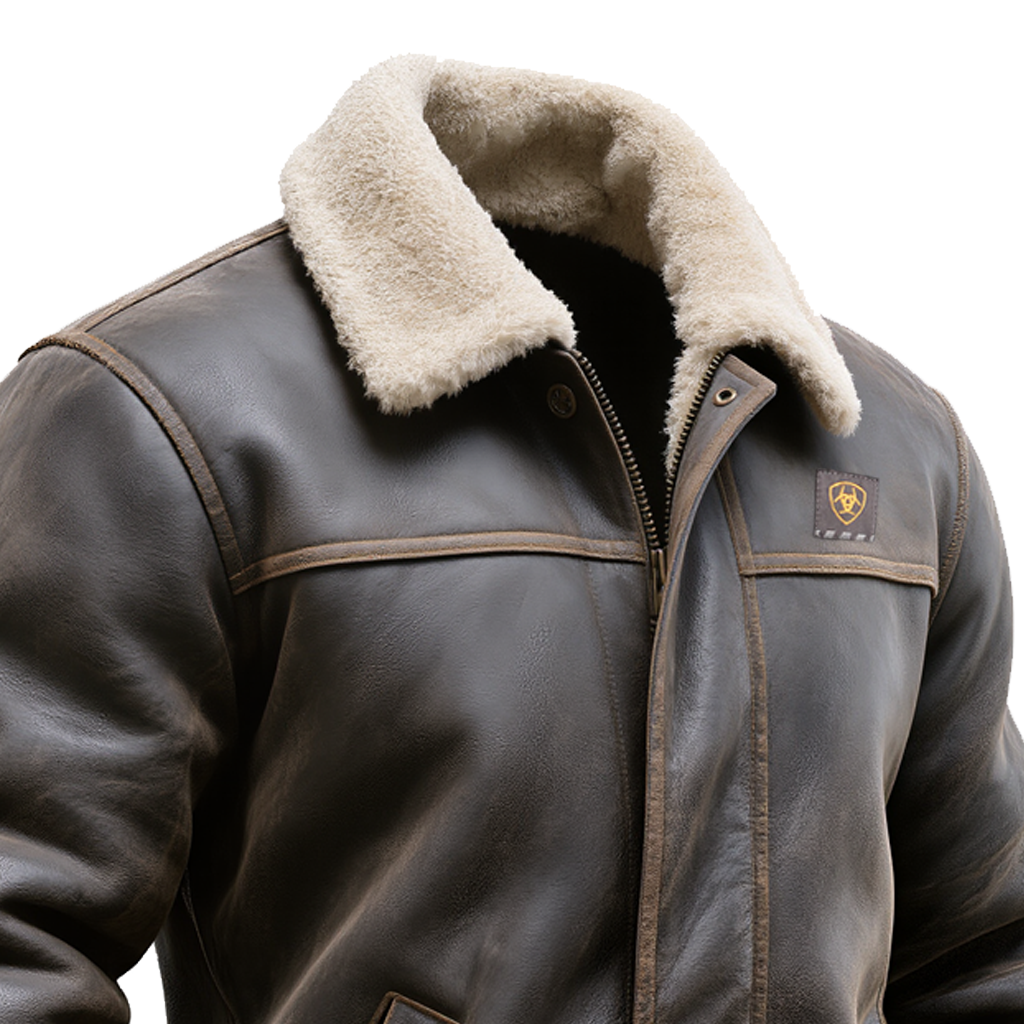 Men's Retro Warmth Vintage Leather Jacket With Shearling Collar