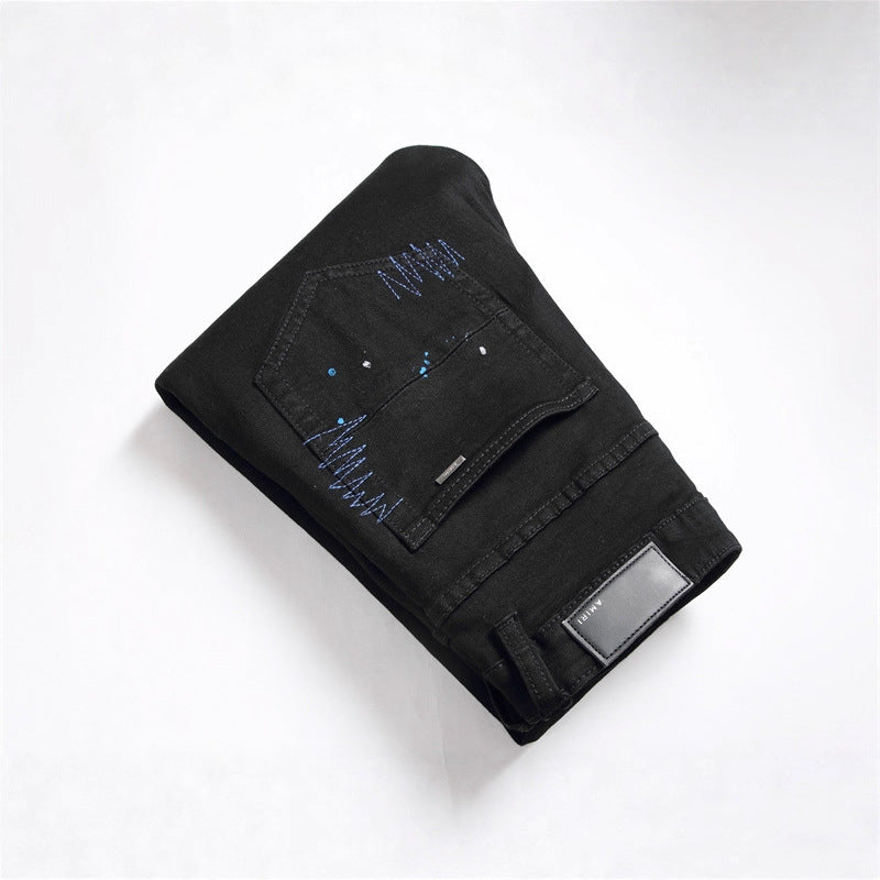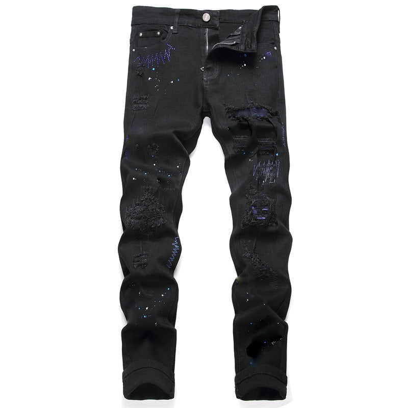 Distressed Black Jeans With Embellished Design For Men - Perfect For Trendy Outfits