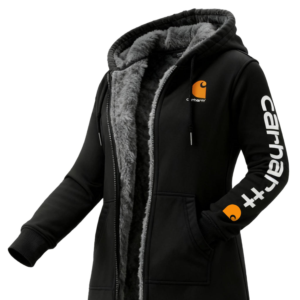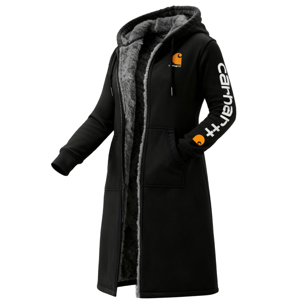 Women's Vintage Fleece Pocket Full Zip Long Sleeve Hoodie Long Coat