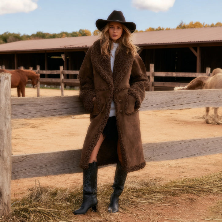 • Design Elements: Cowboy hat-inspired styling, cozy shearling trim, classic aviator jacket silhouette