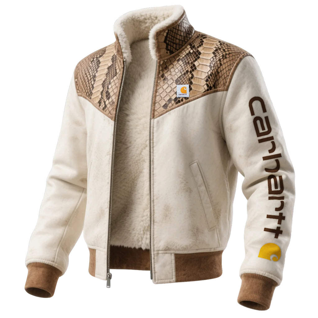 Men's Retro Snake Print Color Block Stand Collar Jacket With Fur Lining And Thick Stand Collar Coat