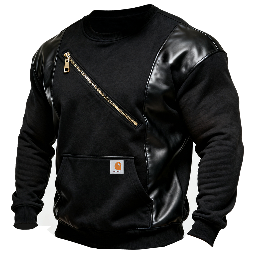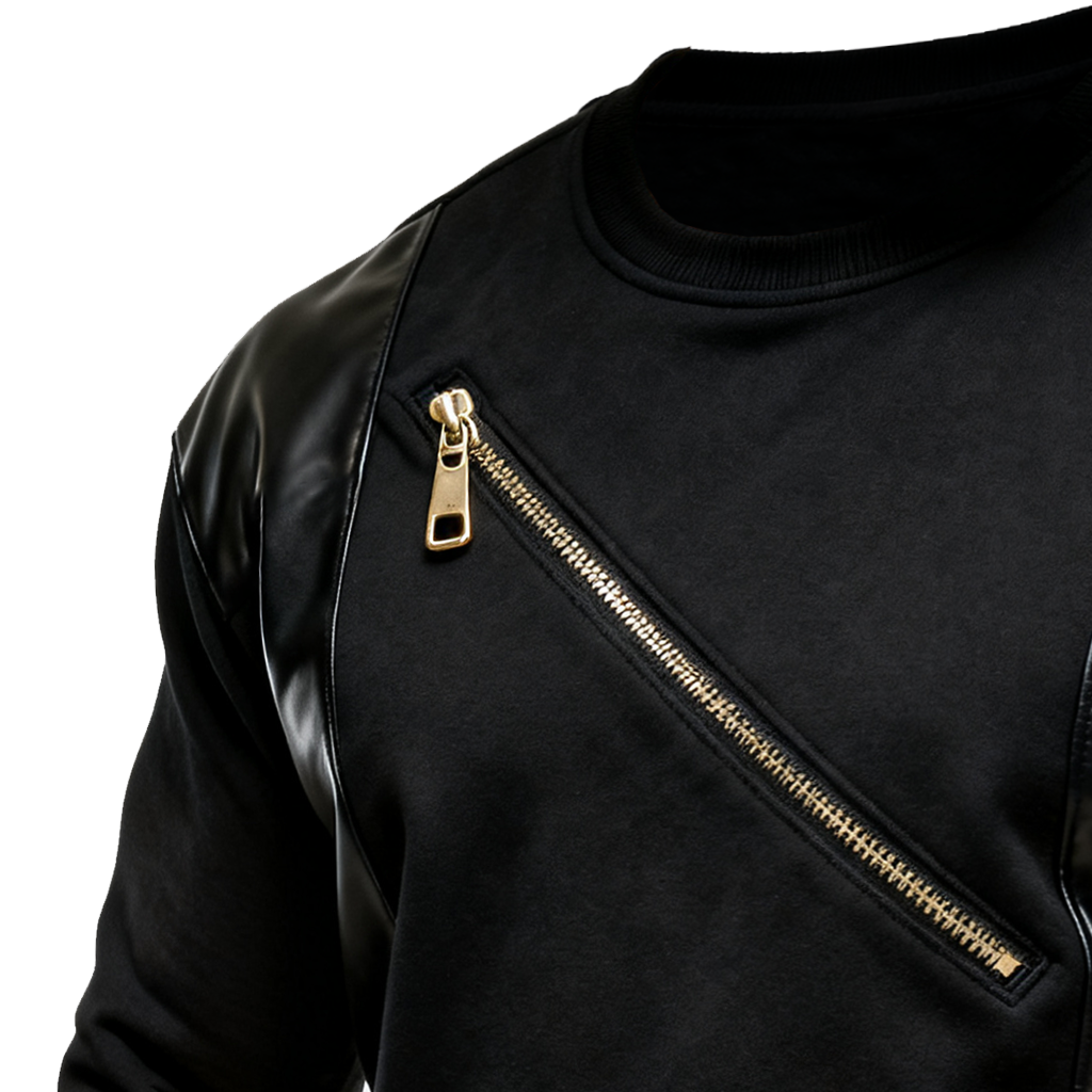 Men's Faux Leather Panel Sweatshirt With Zipper Detail