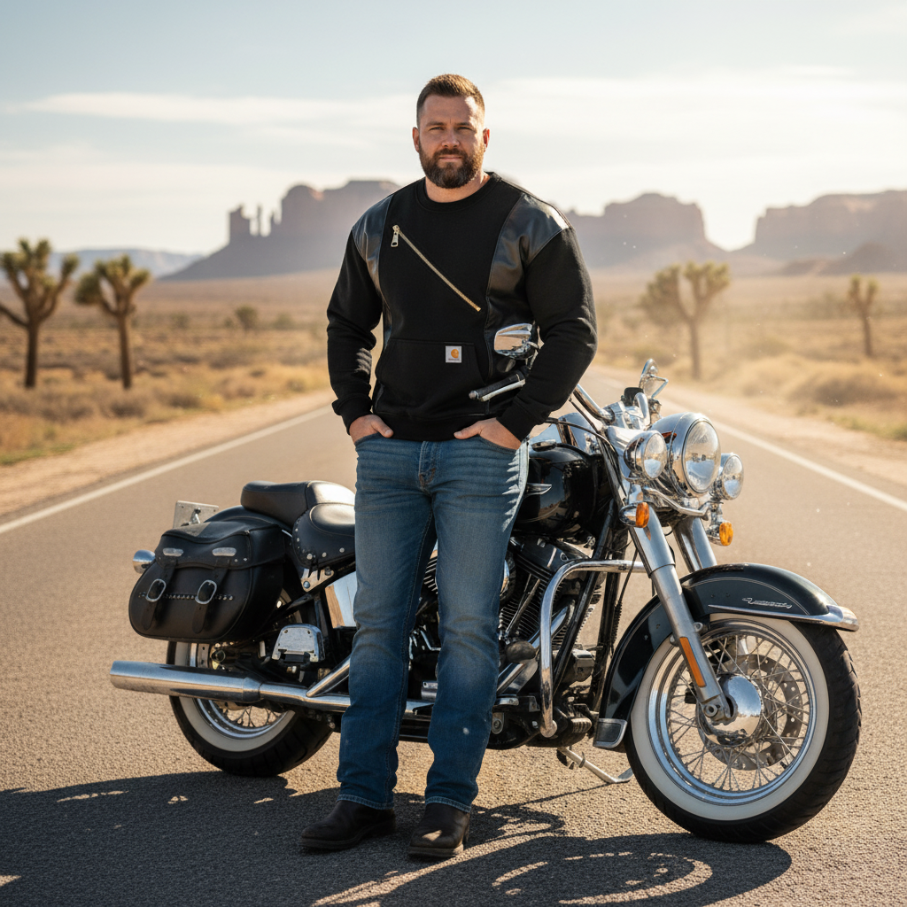 • Design Elements: Sleek diagonal zipper design, modern leather accents, casual yet sophisticated look