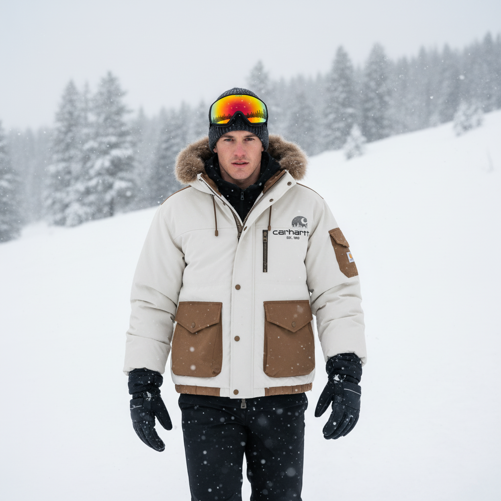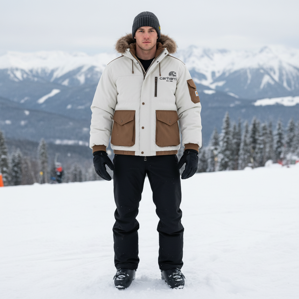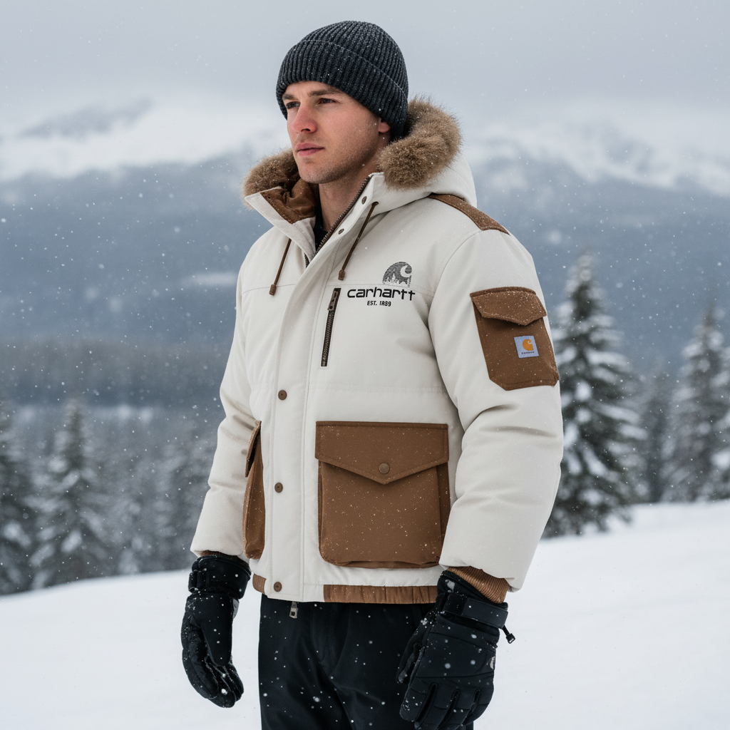 • Design Elements: Features a sleek quilted pattern and a detachable hood for versatility