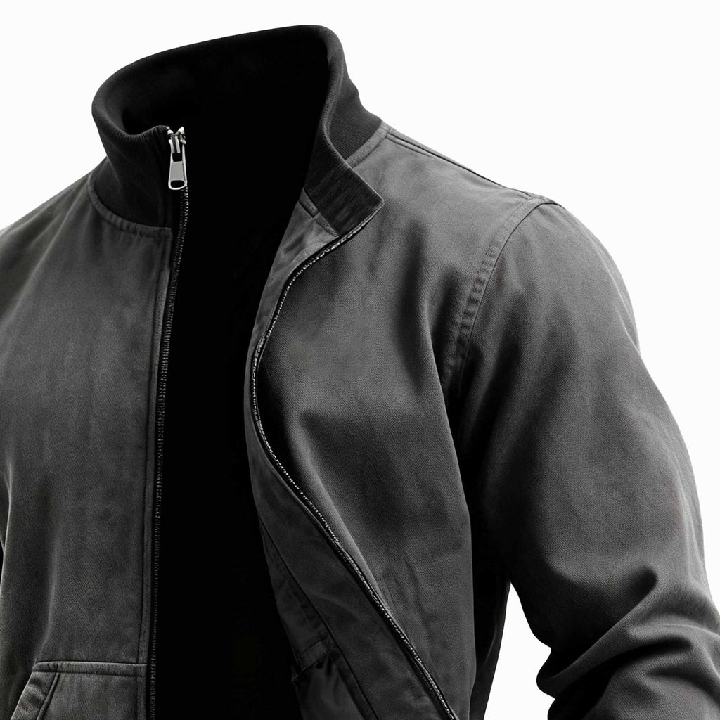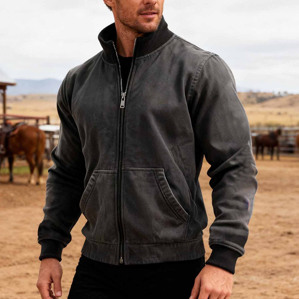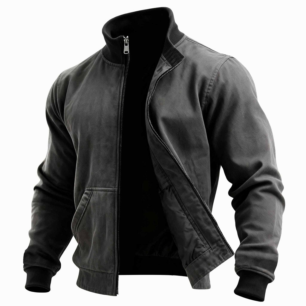 Men's Vintage Dark Gray And Black Color-Blocked Stand Collar Jacket