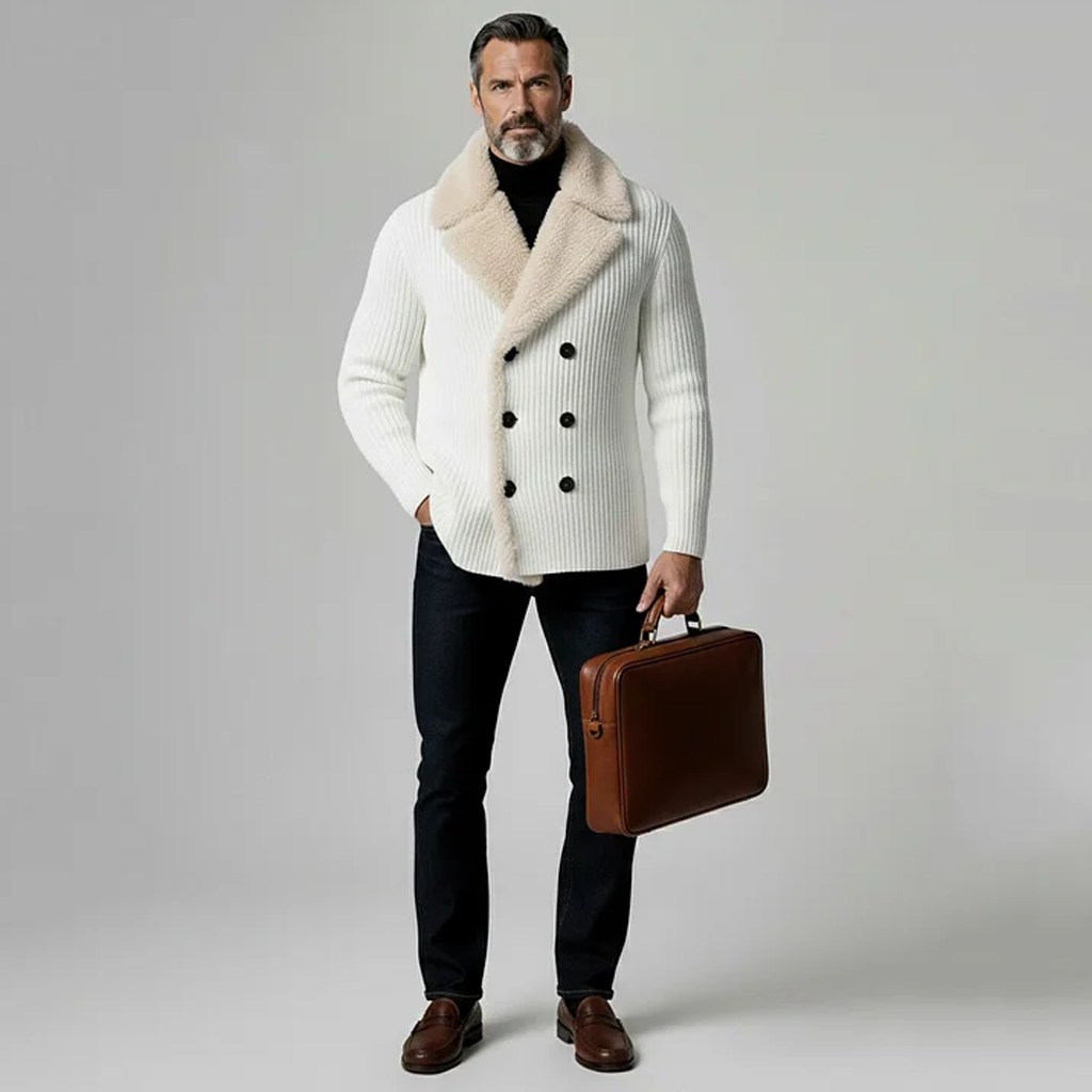 • Design Elements: Double-breasted Closure, Faux Fur Collar, Classic Fit